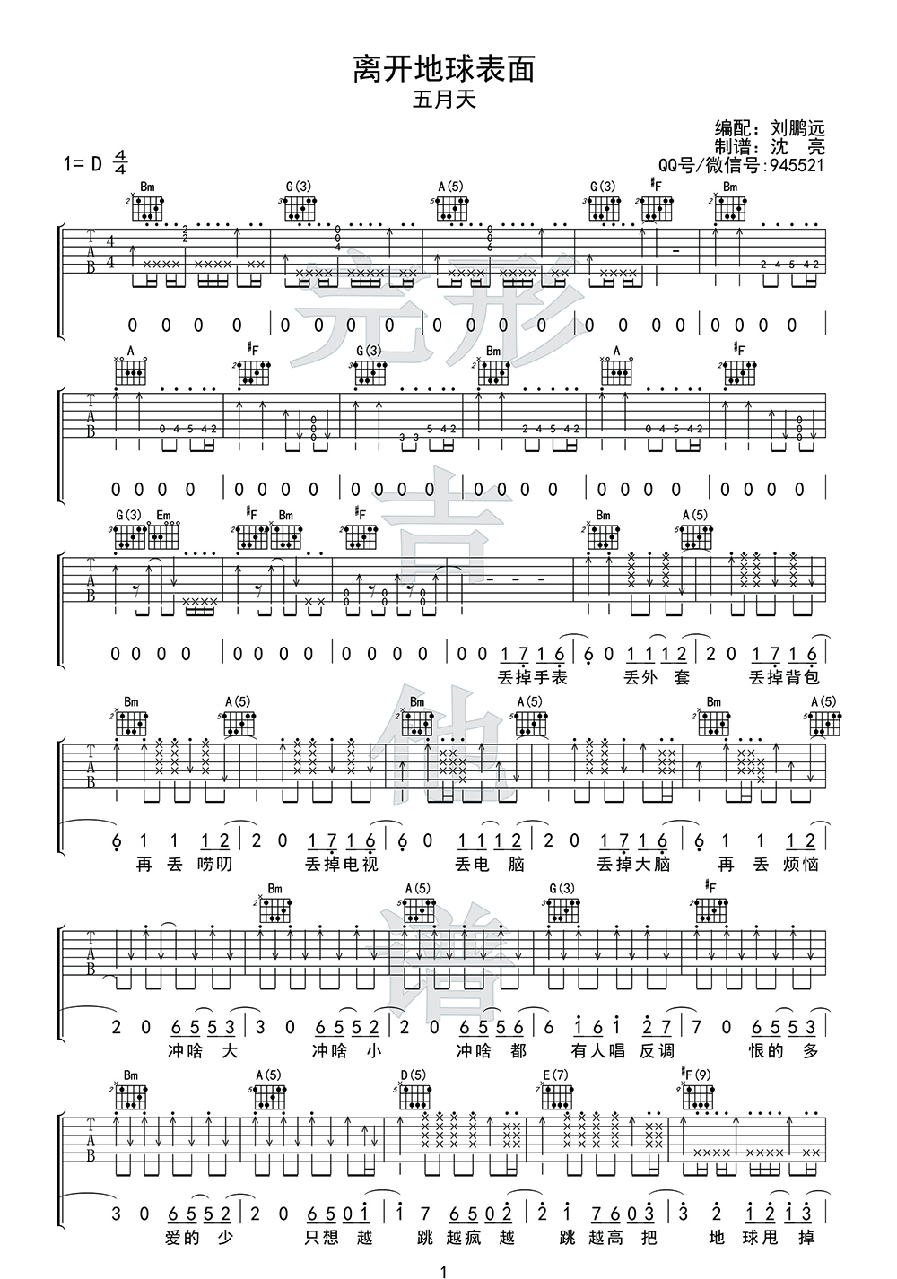 离开地球表面吉他谱 - 五月天 - D调吉他弹唱谱 - 原版