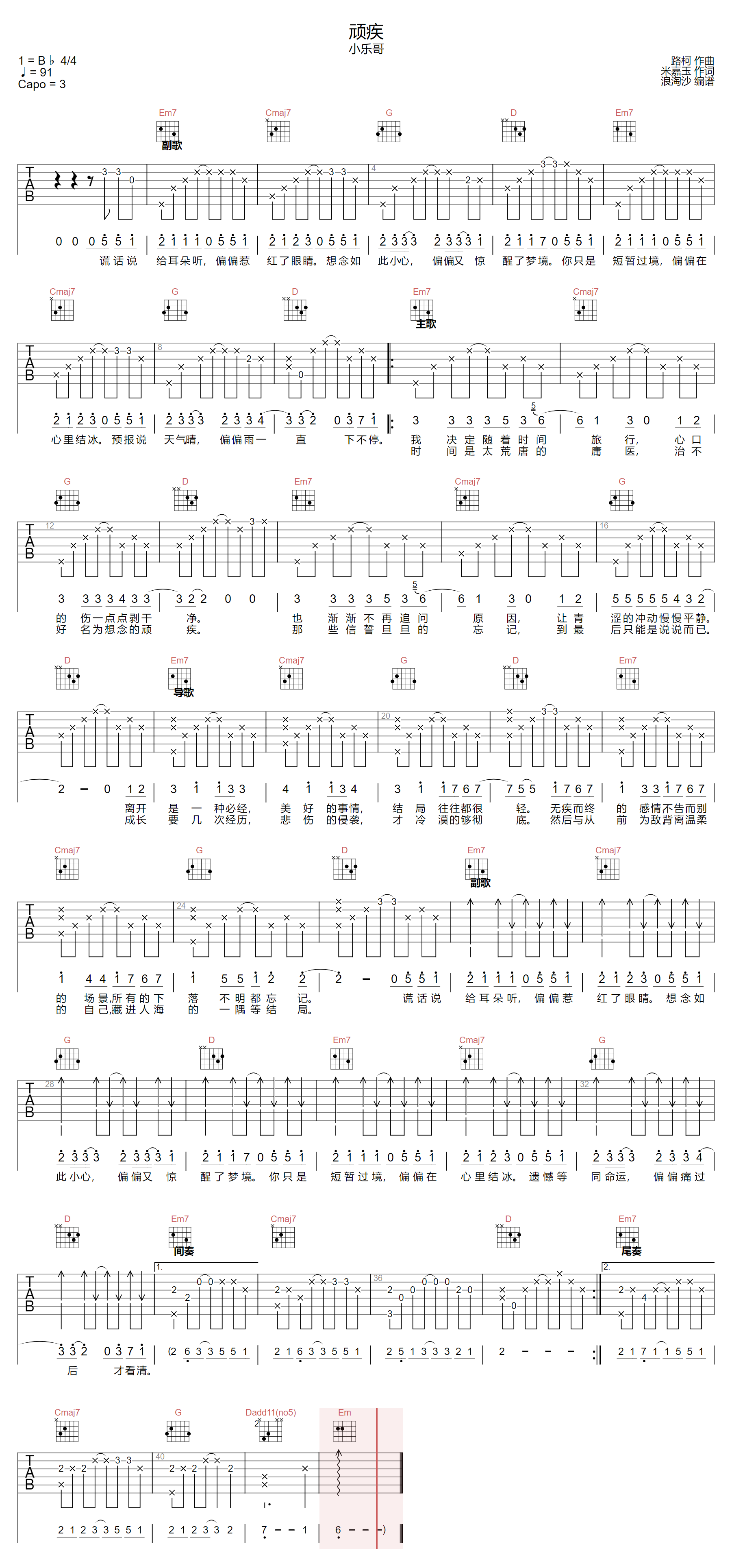 顽疾吉他谱 - 小乐哥 - G调吉他弹唱谱 - 原版