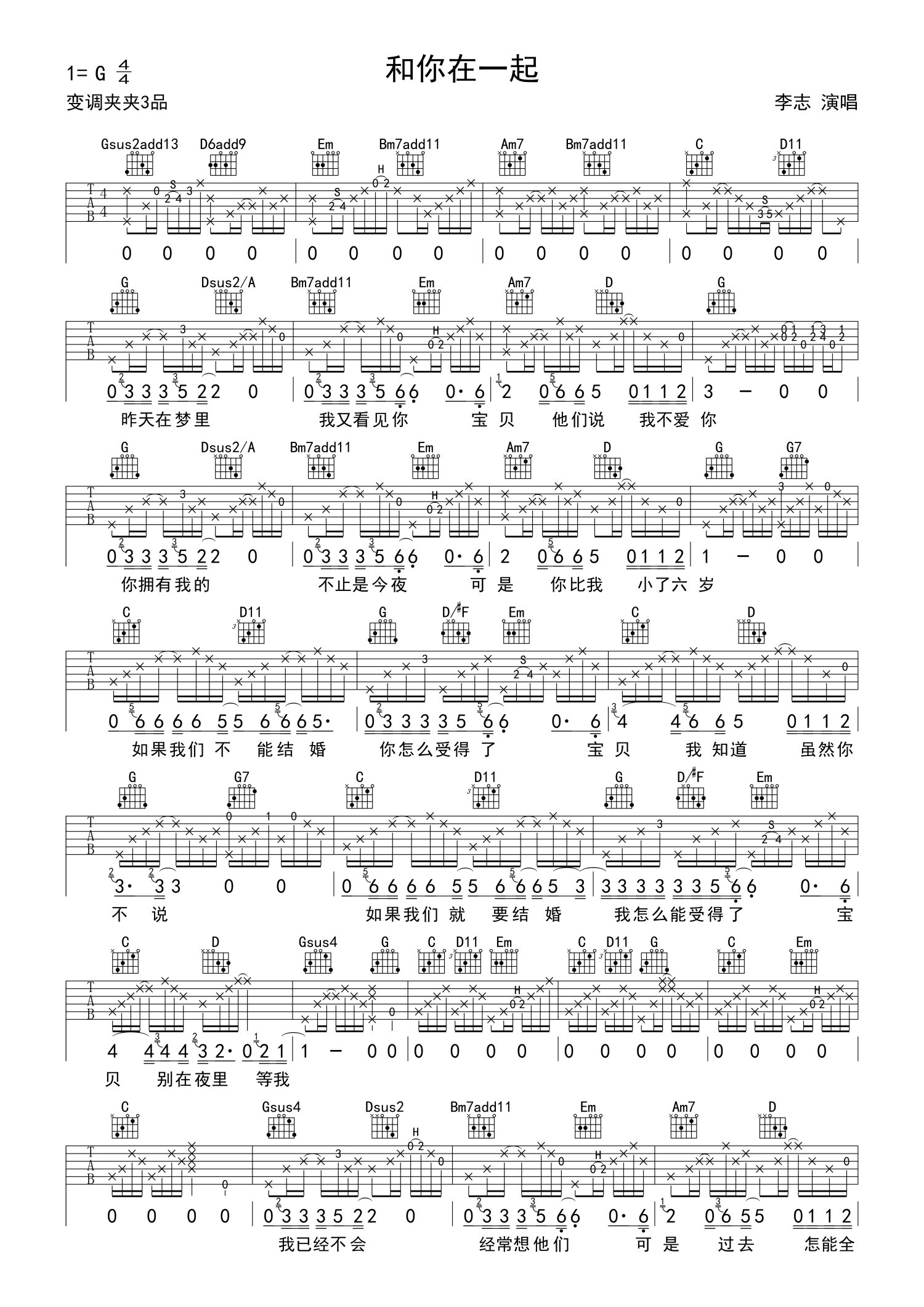 • 和你在一起吉他谱 - 李志 - G调吉他弹唱谱第1张