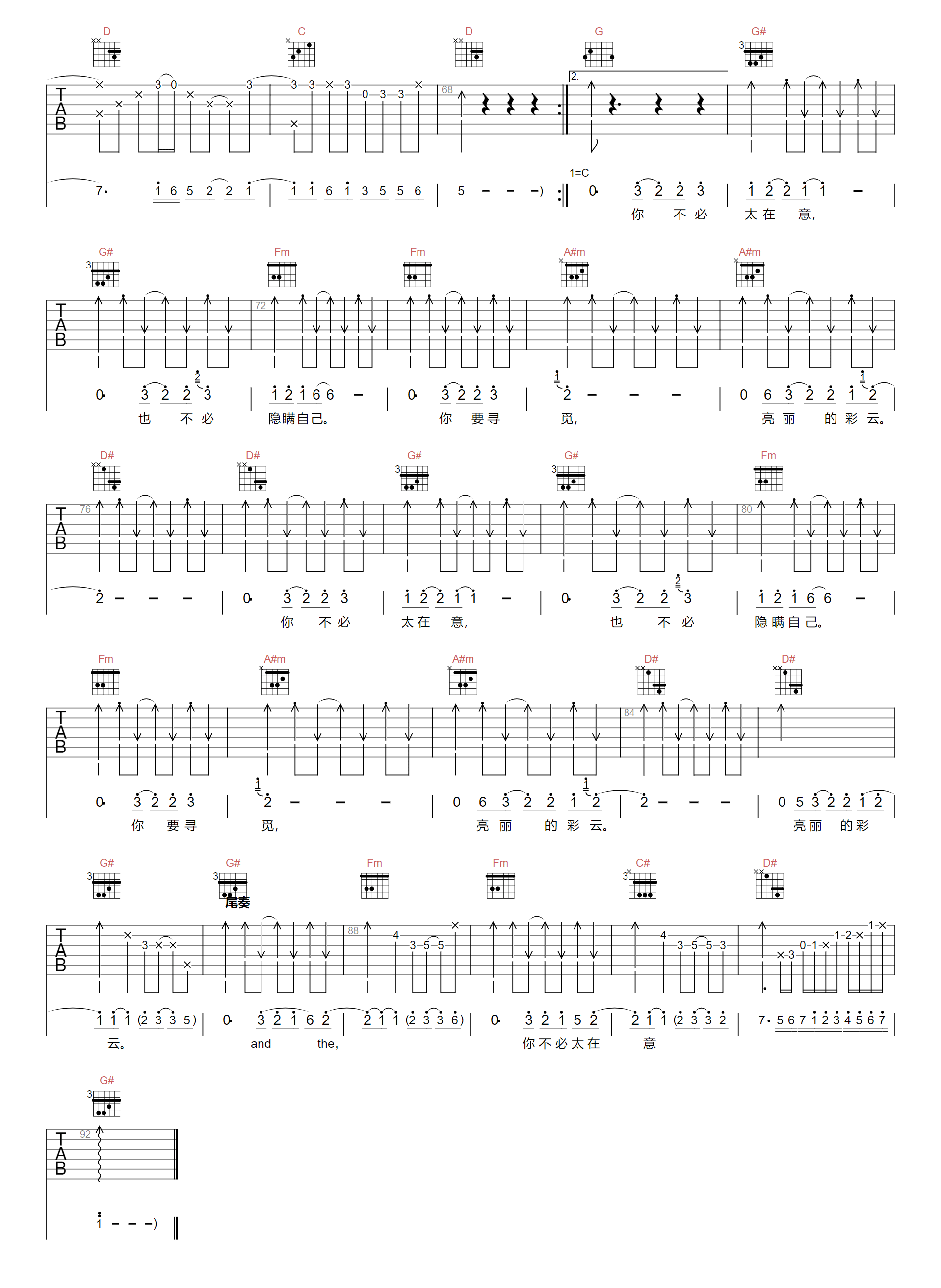 当前位置:琴谱网>吉他弹唱>不必太在意