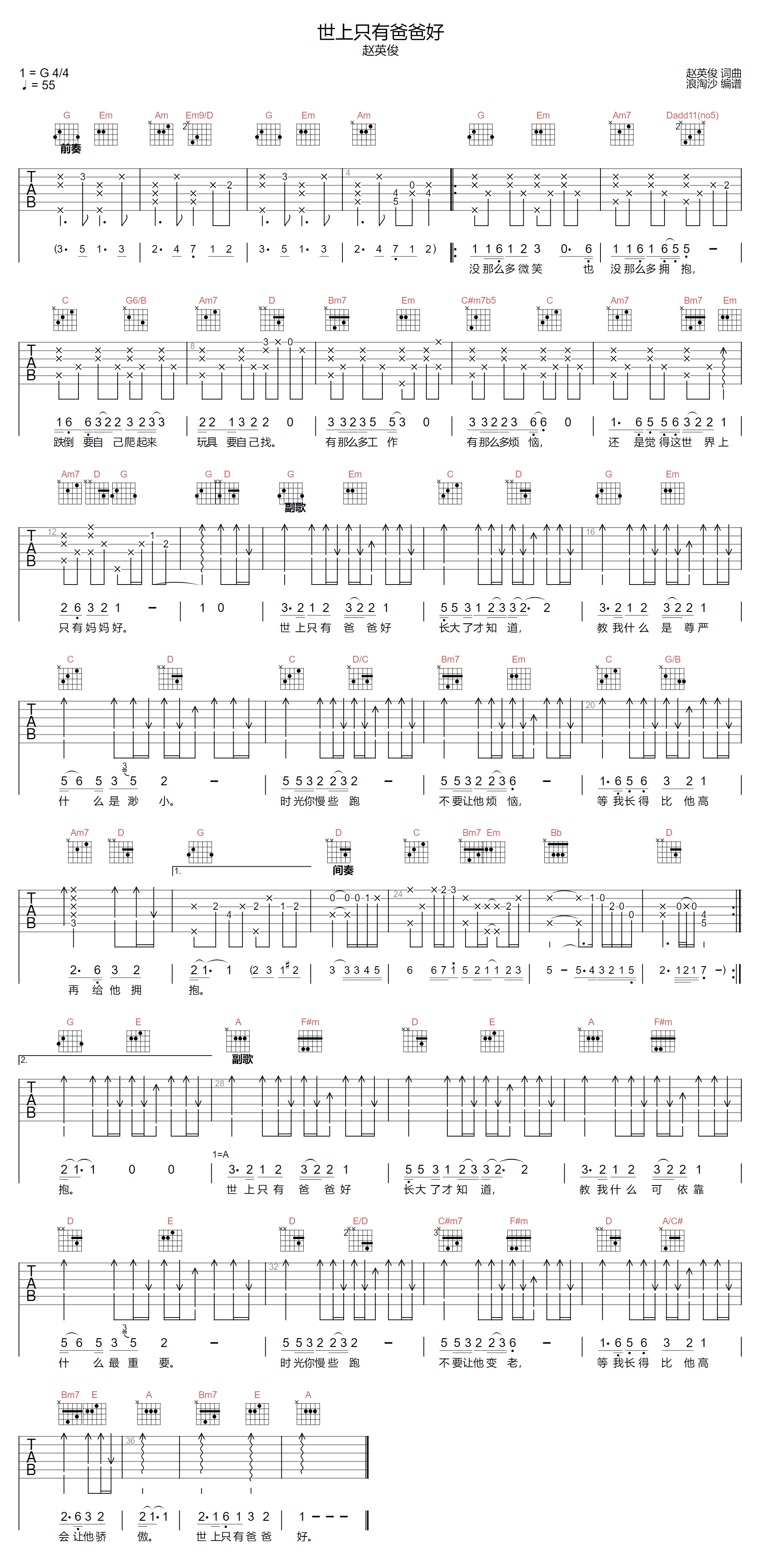 世上只有爸爸好吉他谱 - 赵英俊 - G调吉他弹唱谱 - 原版