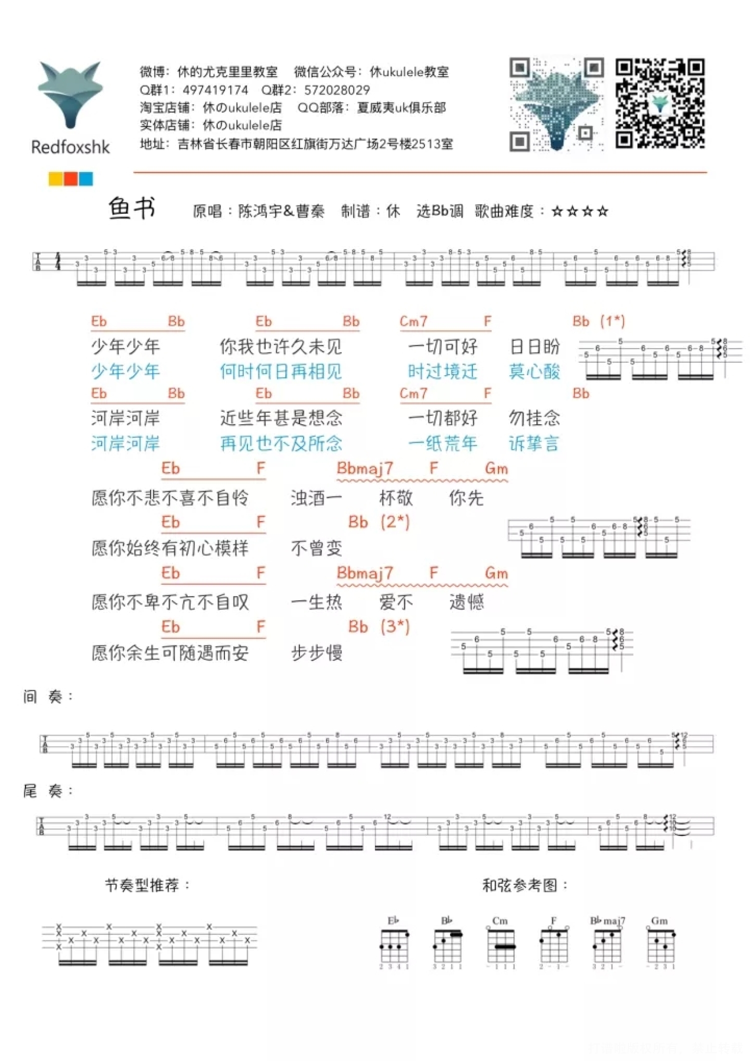 鱼书尤克里里谱 - 陈鸿宇
