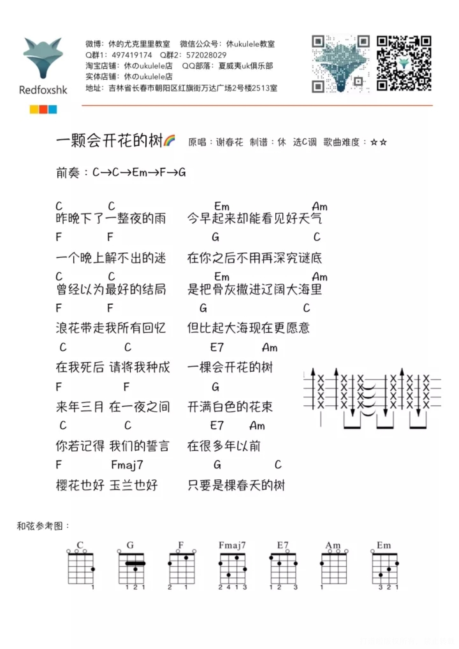 一颗会开花的树尤克里里谱 - 谢春花