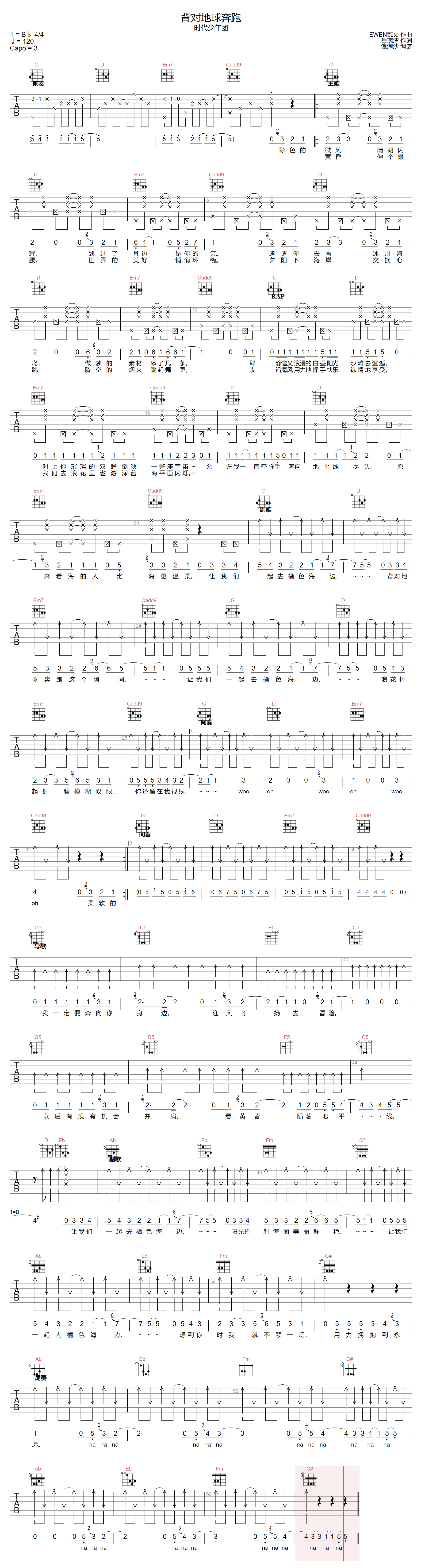 背对地球奔跑吉他谱 - 时代少年团 - G调吉他弹唱谱 - 原版
