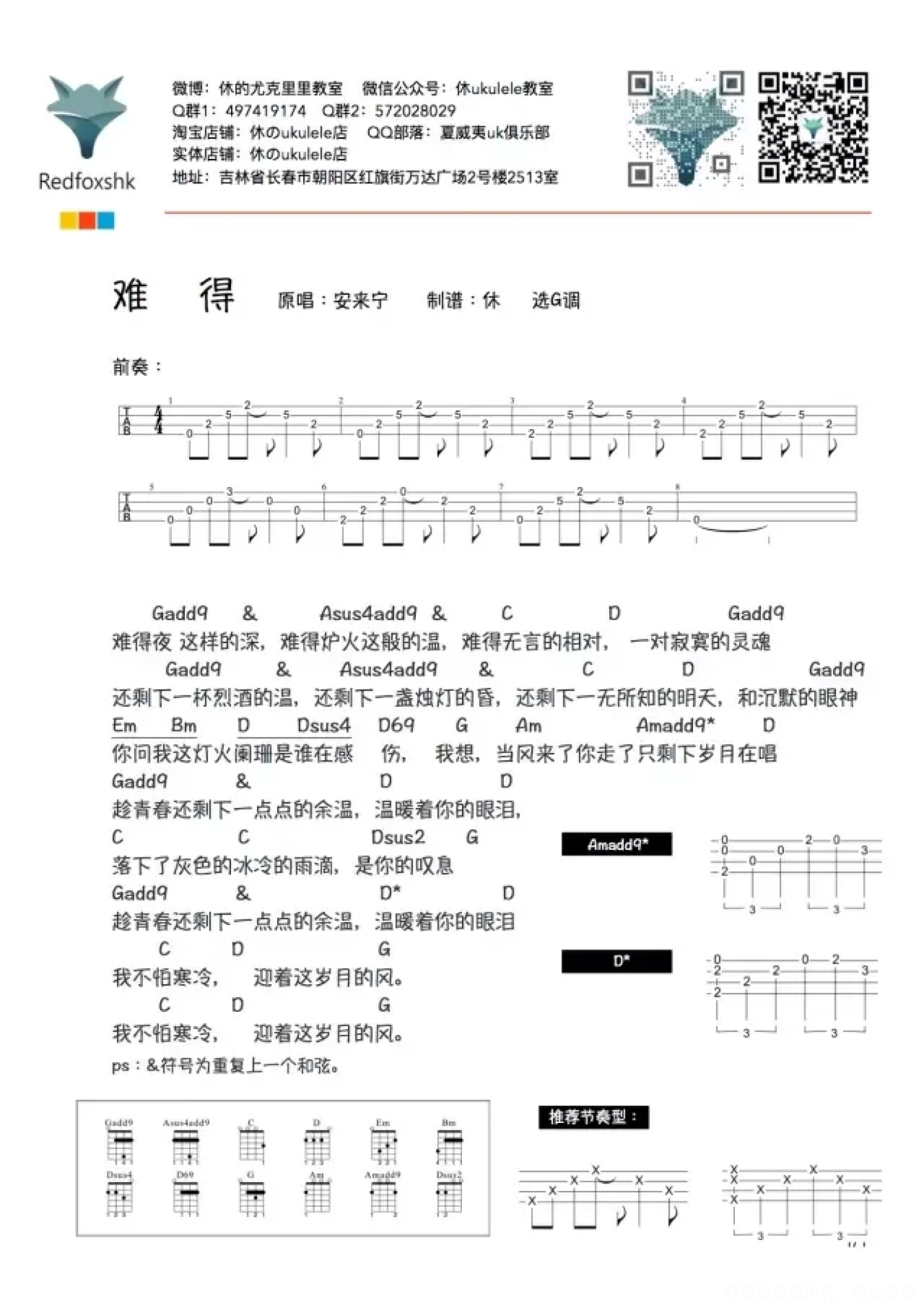 曲谱介绍: 难得ukulele弹唱演示   难得ukulele谱