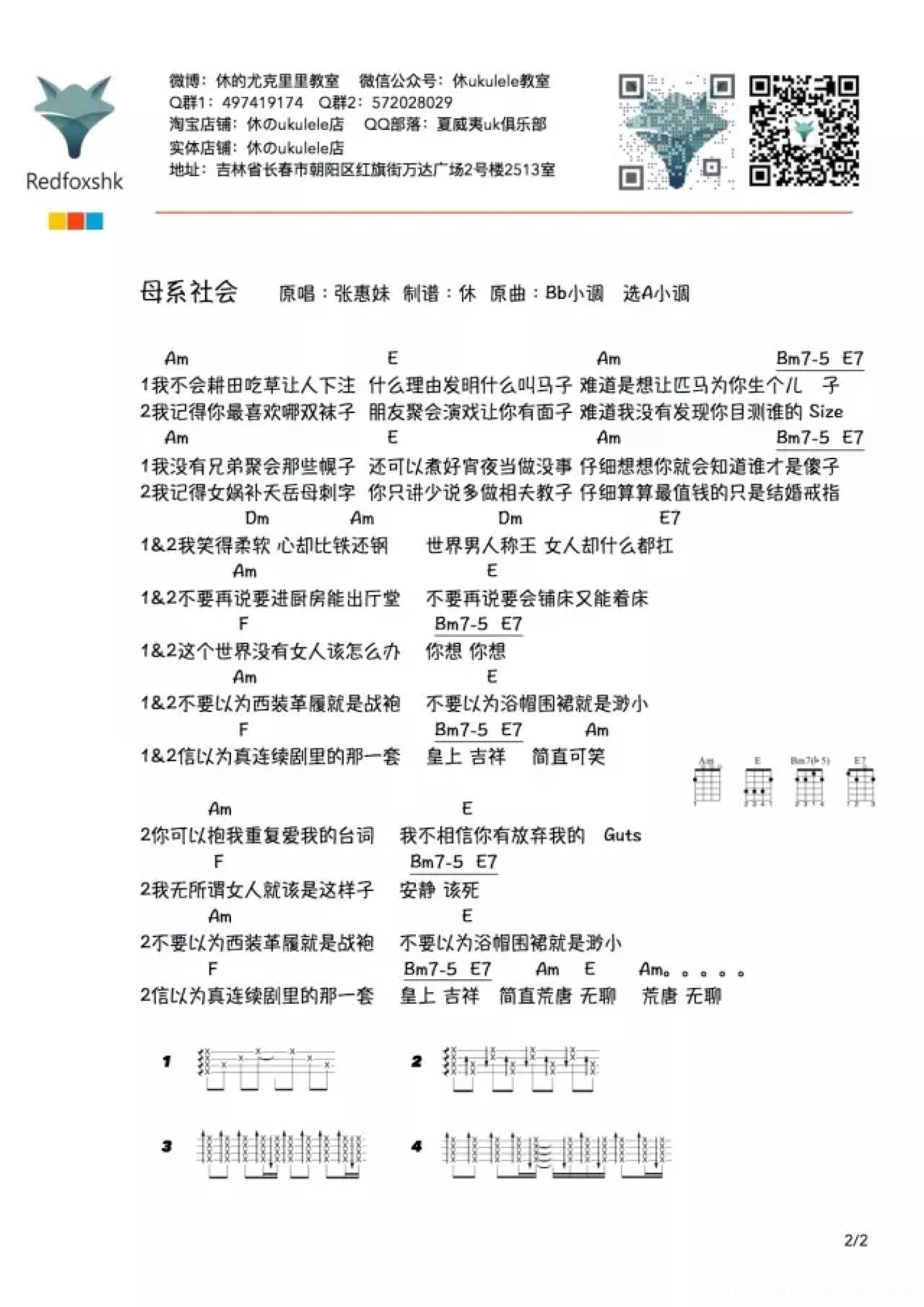 曲谱介绍: 张惠妹《母系社会》,共有1张高清图谱,免翻页排版设计。