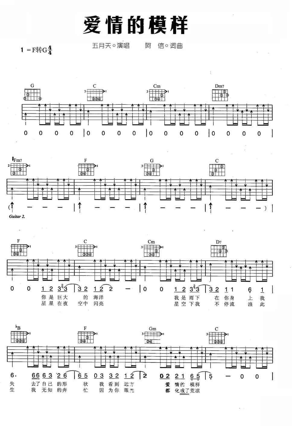 爱情的模样吉他谱 - 五月天 - F调吉他弹唱谱 - 原版
