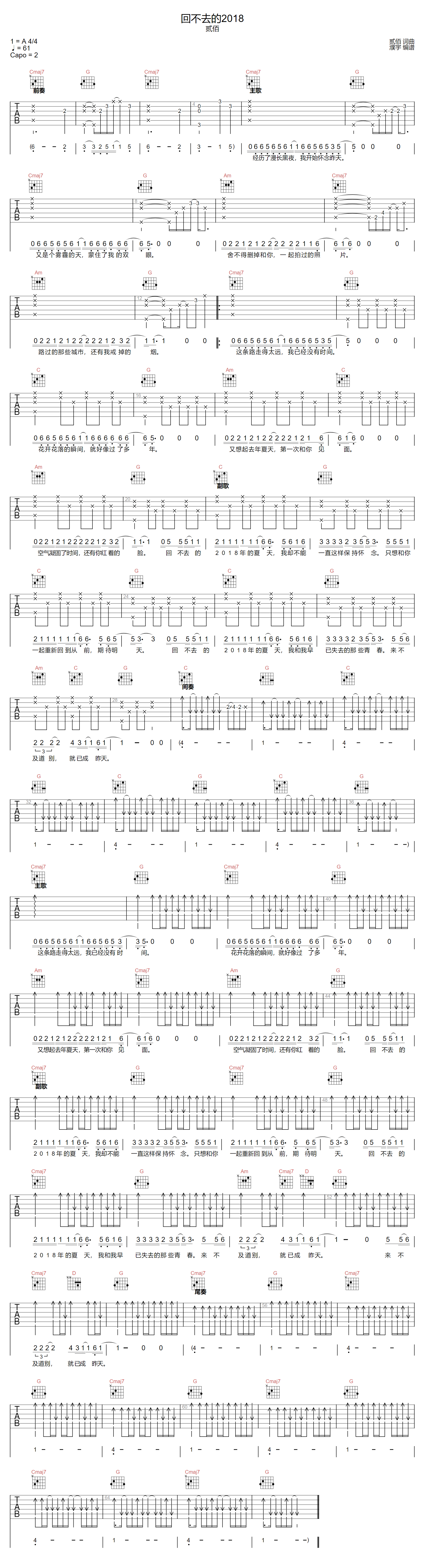 当前位置:琴谱网>吉他弹唱>回不去的2018