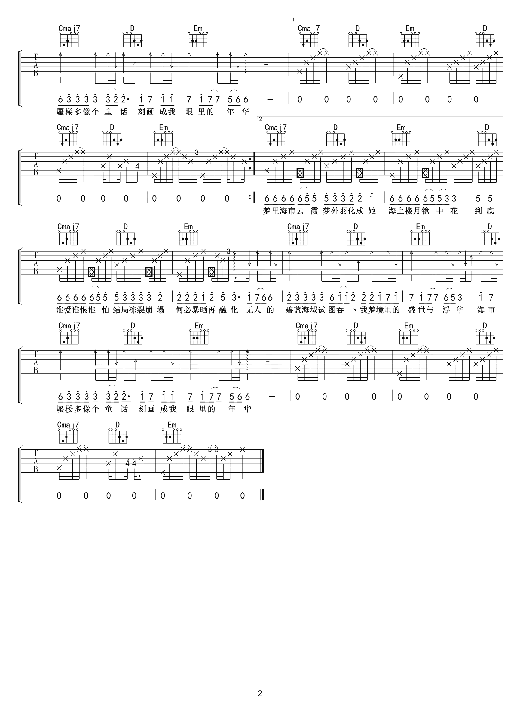 当前位置:琴谱网>吉他弹唱>海市蜃楼