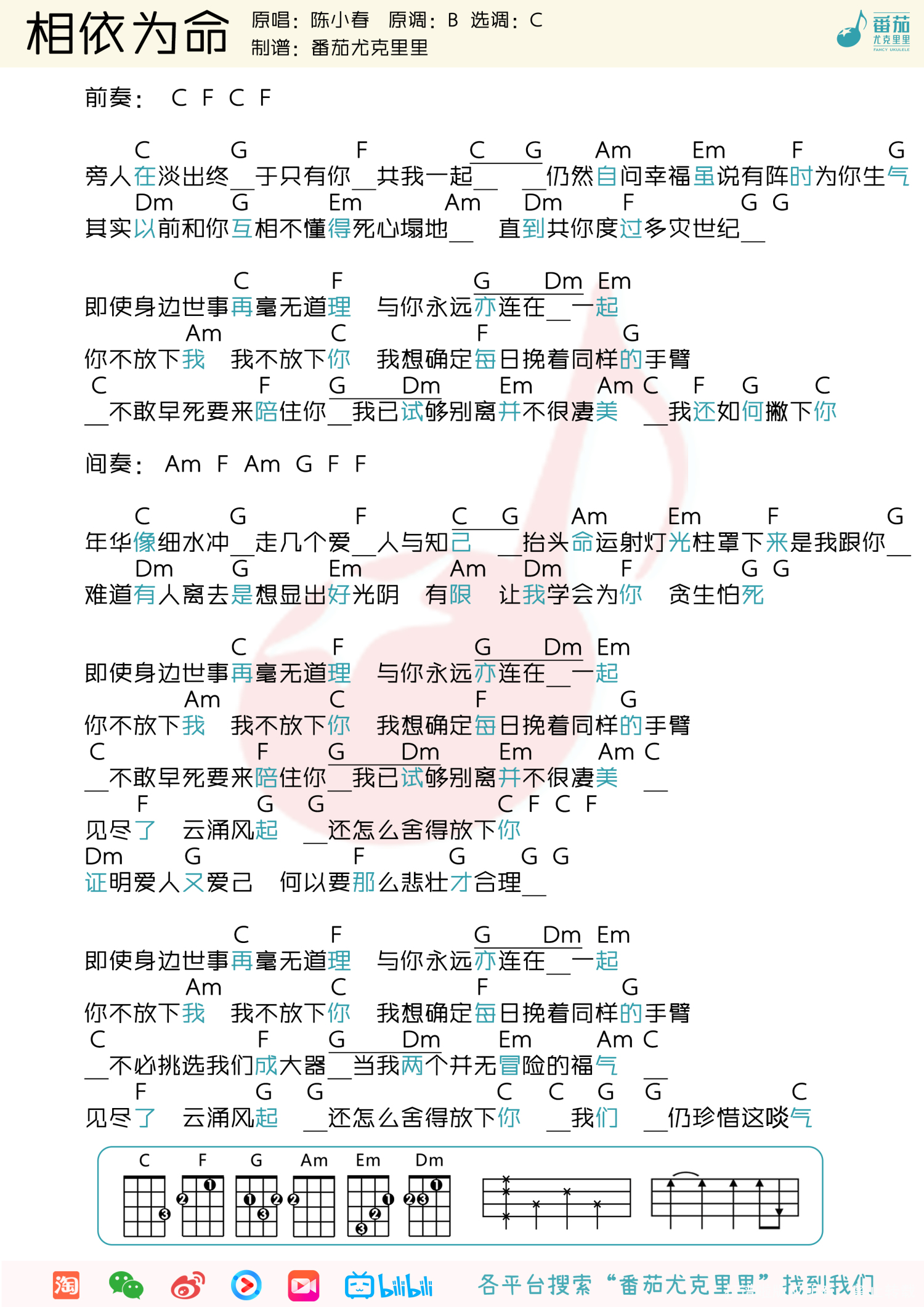 曲谱介绍: 陈小春《相依为命》,共有1张高清图谱,免翻页排版设计。