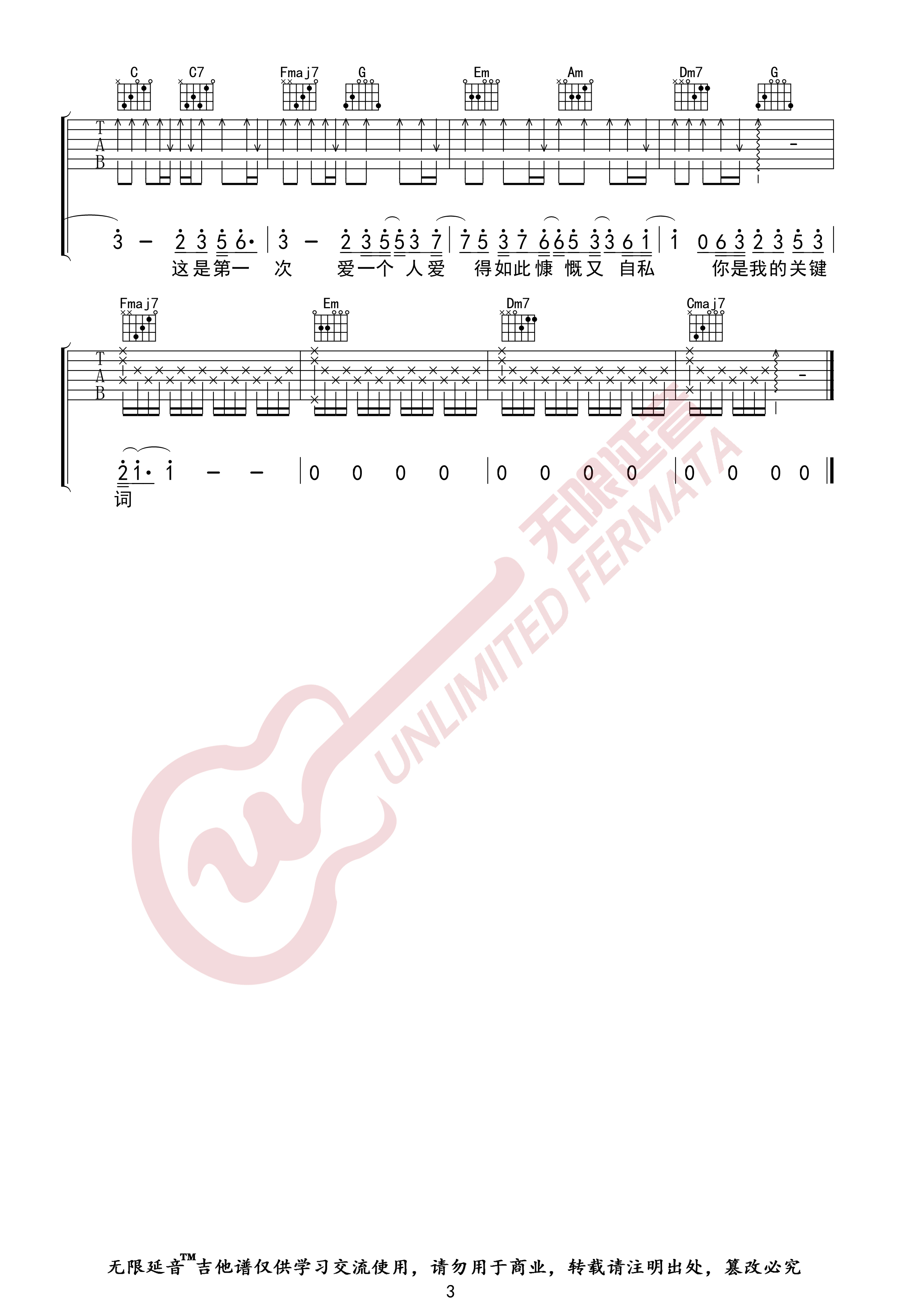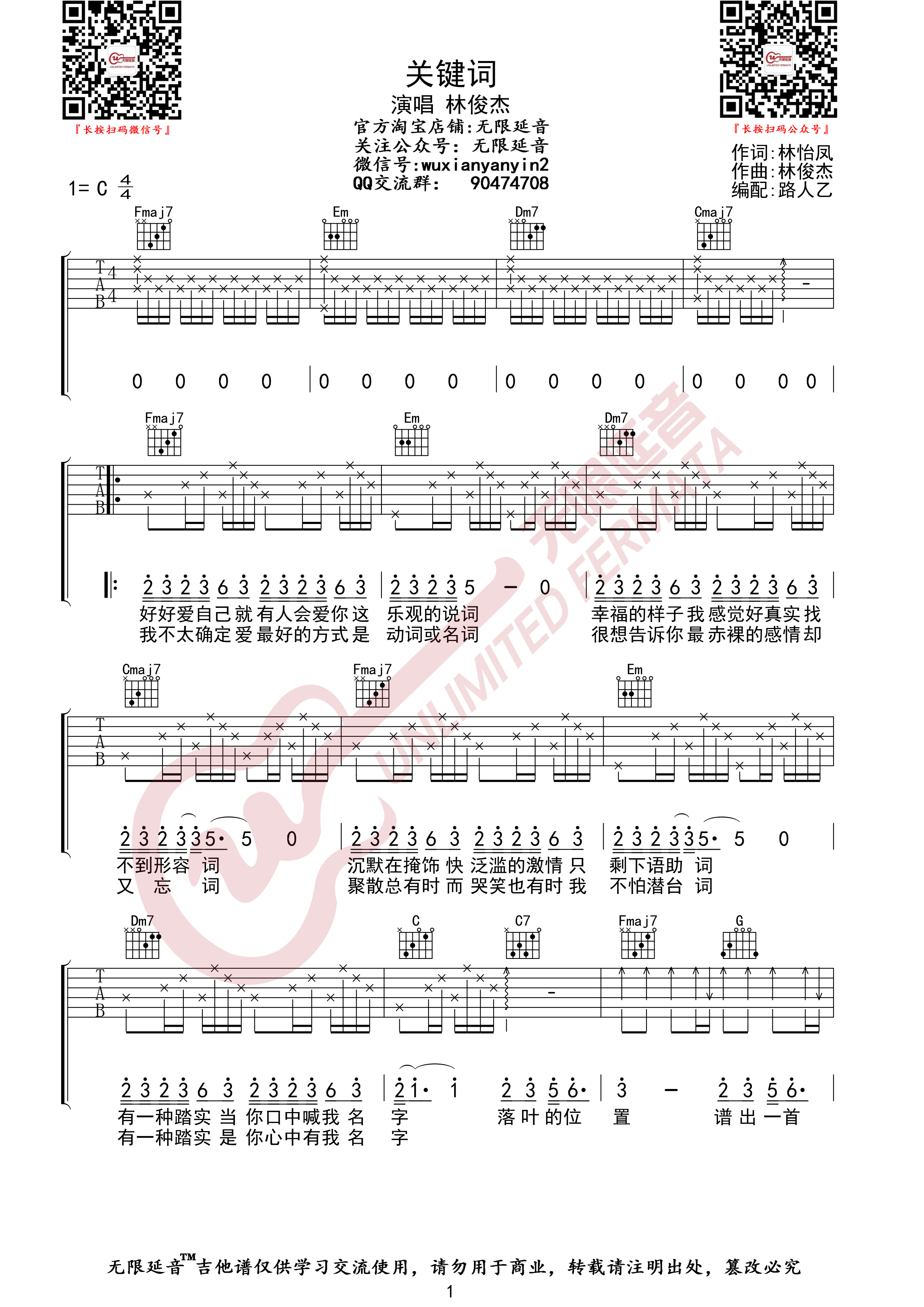 关键词吉他谱 - 林俊杰 - C调吉他弹唱谱