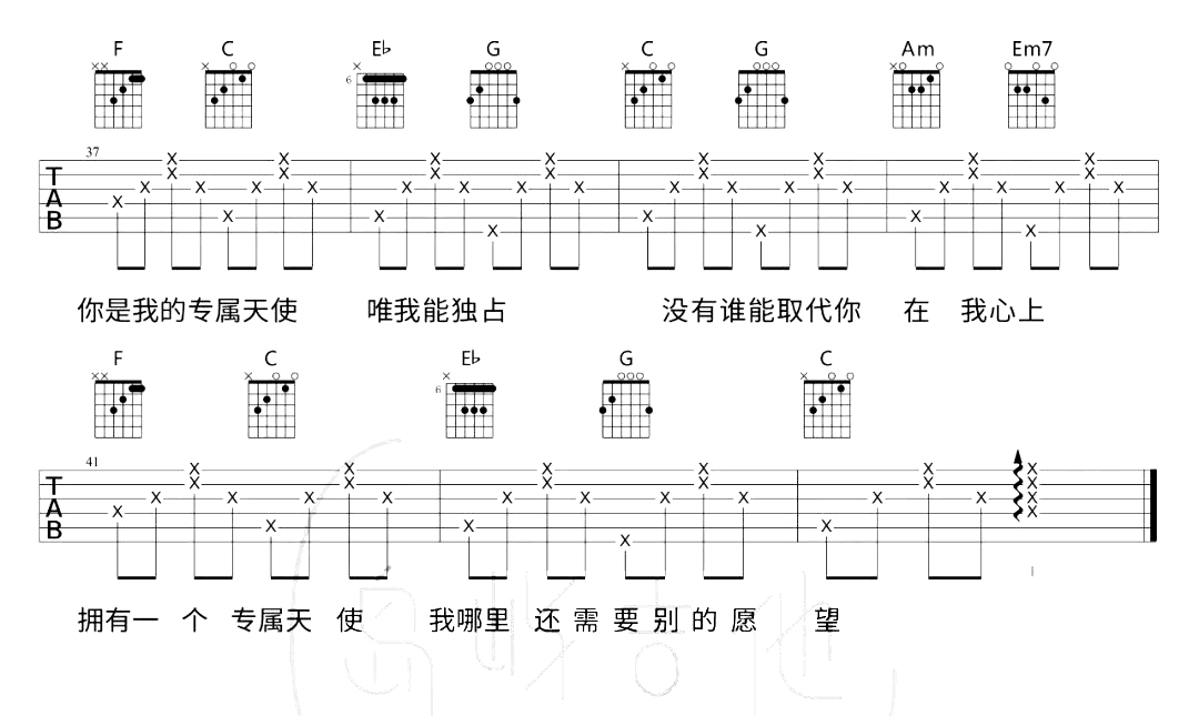 专属天使吉他谱 - TANK - C调吉他弹唱谱