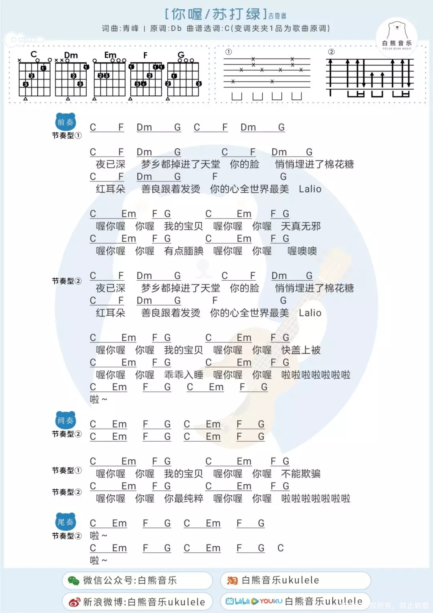 当前位置:琴谱网>尤克里里>你喔!