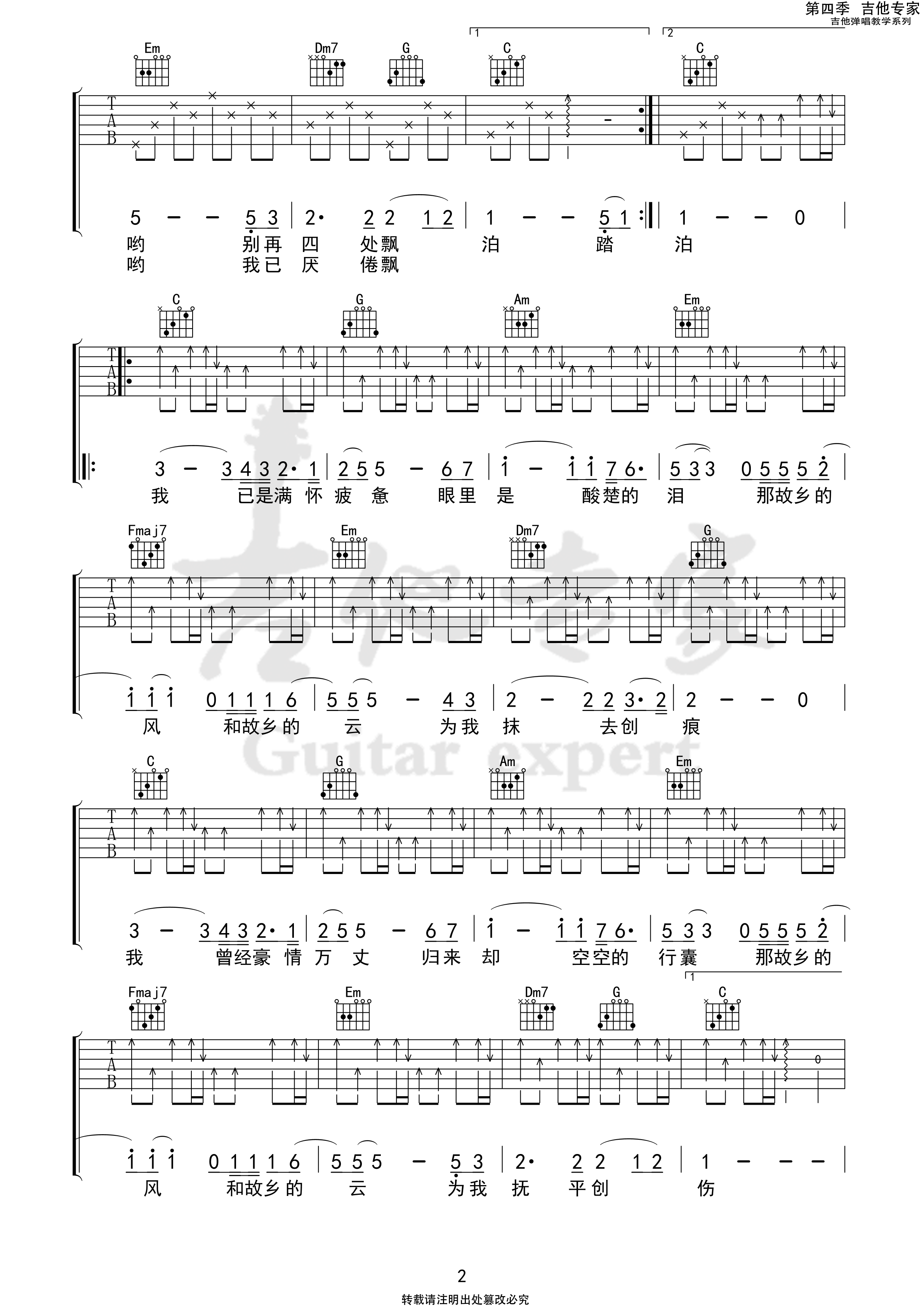 当前位置:琴谱网>吉他弹唱>故乡的云
