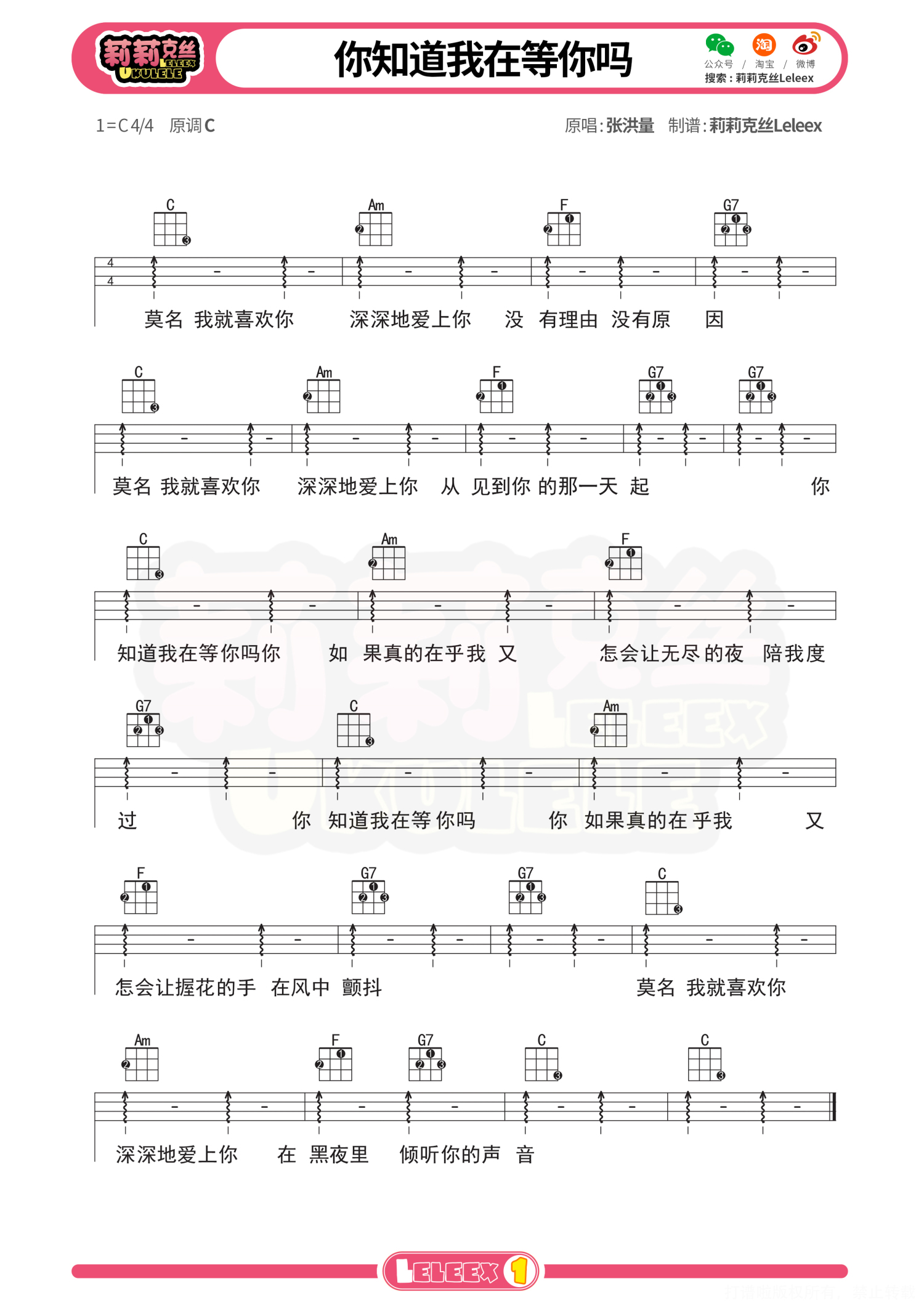 曲谱介绍: 《你知道我在等你吗》尤克里里曲谱 更多尤克里里曲谱/教学  关注@莉莉克丝Leleex