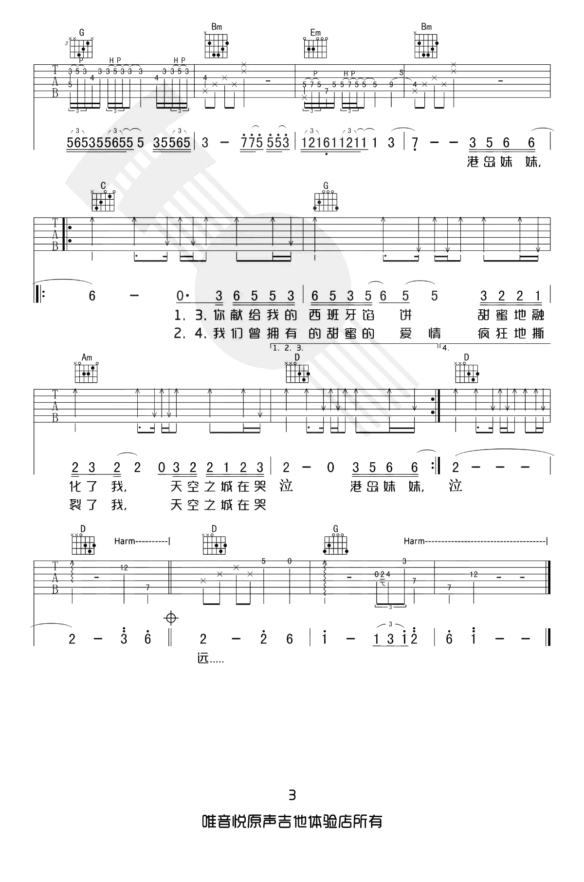 天空之城吉他谱 - 港岛妹妹 - G调吉他弹唱谱