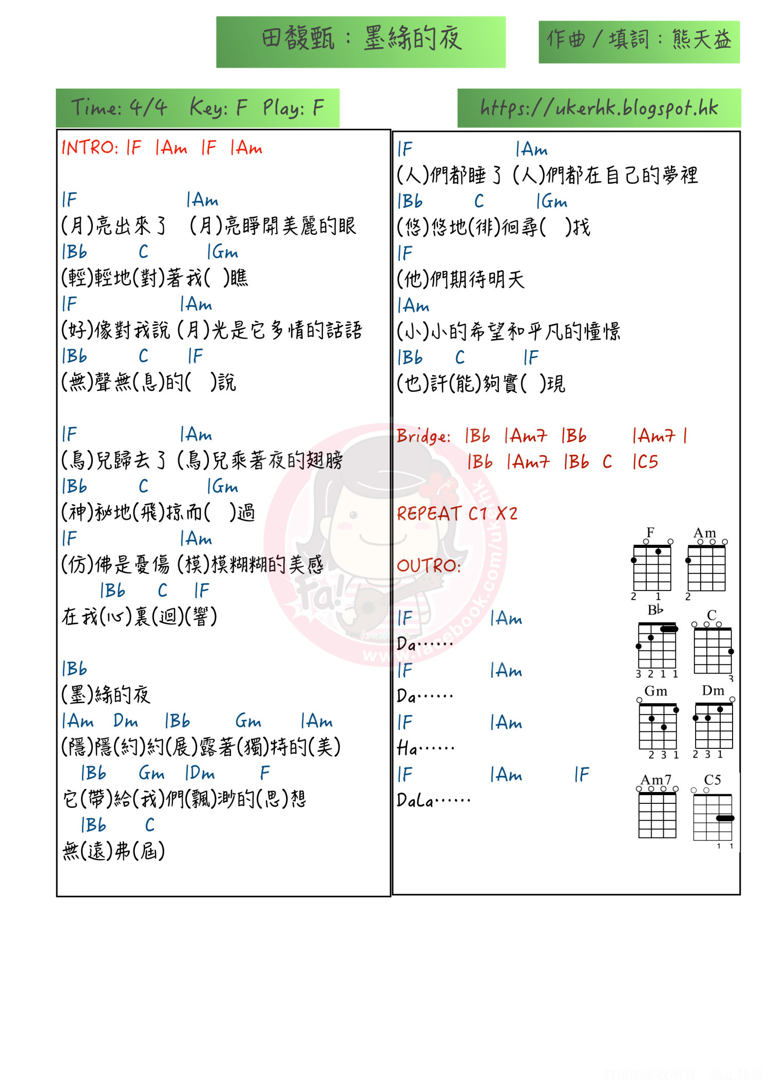 当前位置:琴谱网>尤克里里>墨绿的夜
