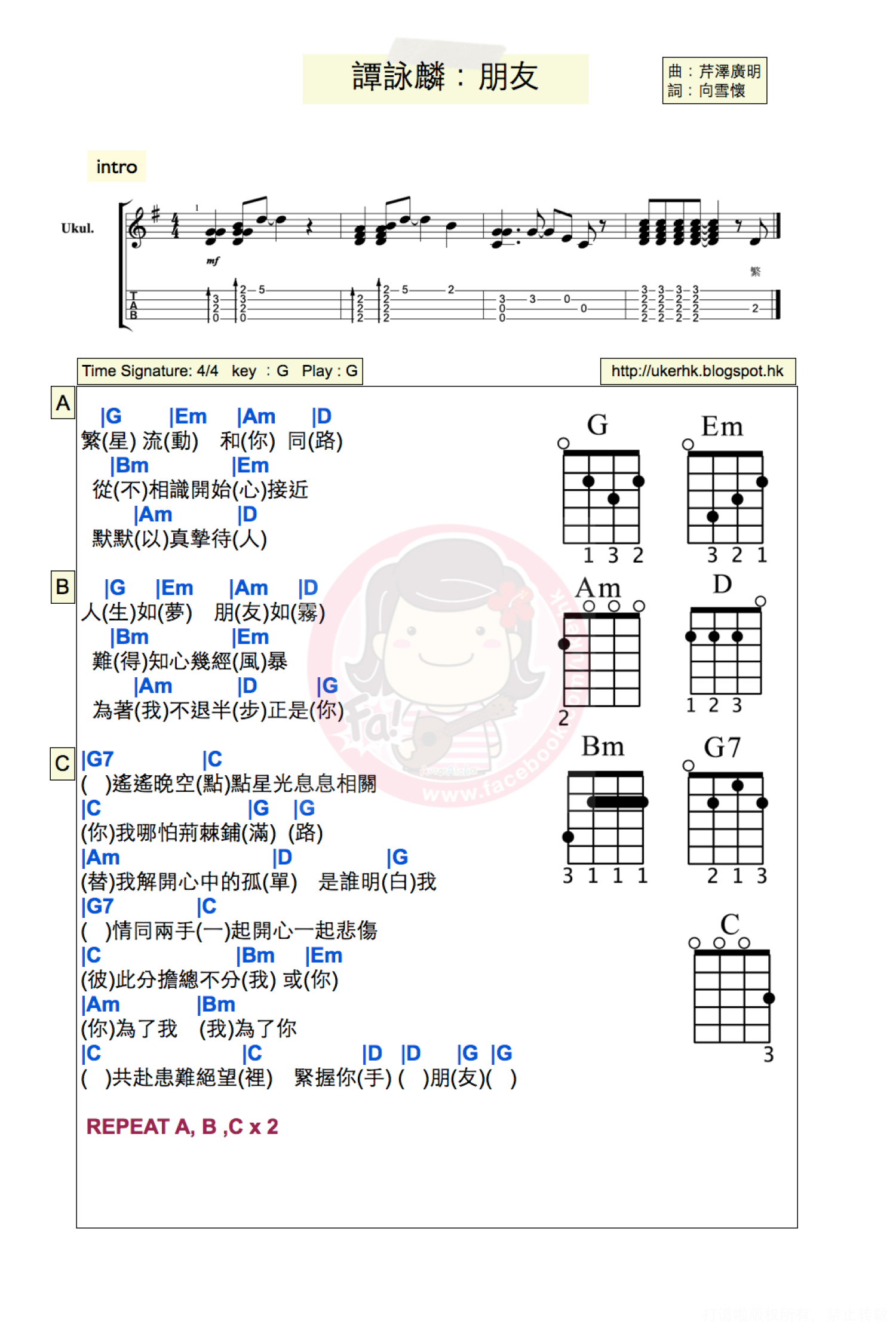 当前位置:琴谱网>尤克里里>朋友