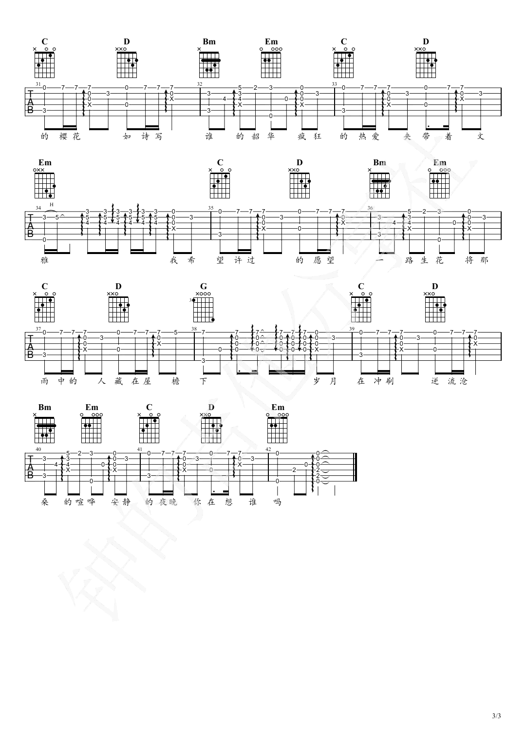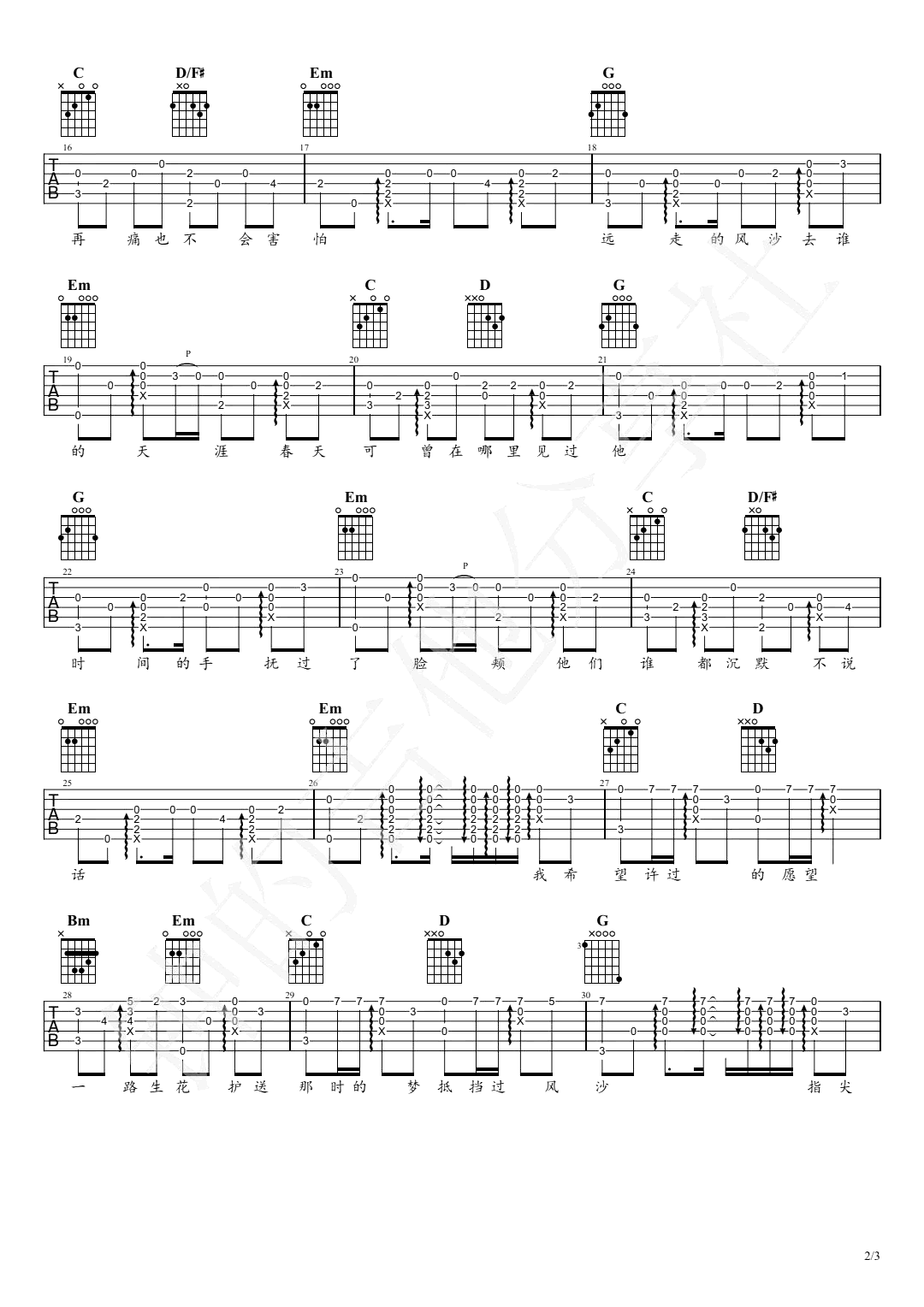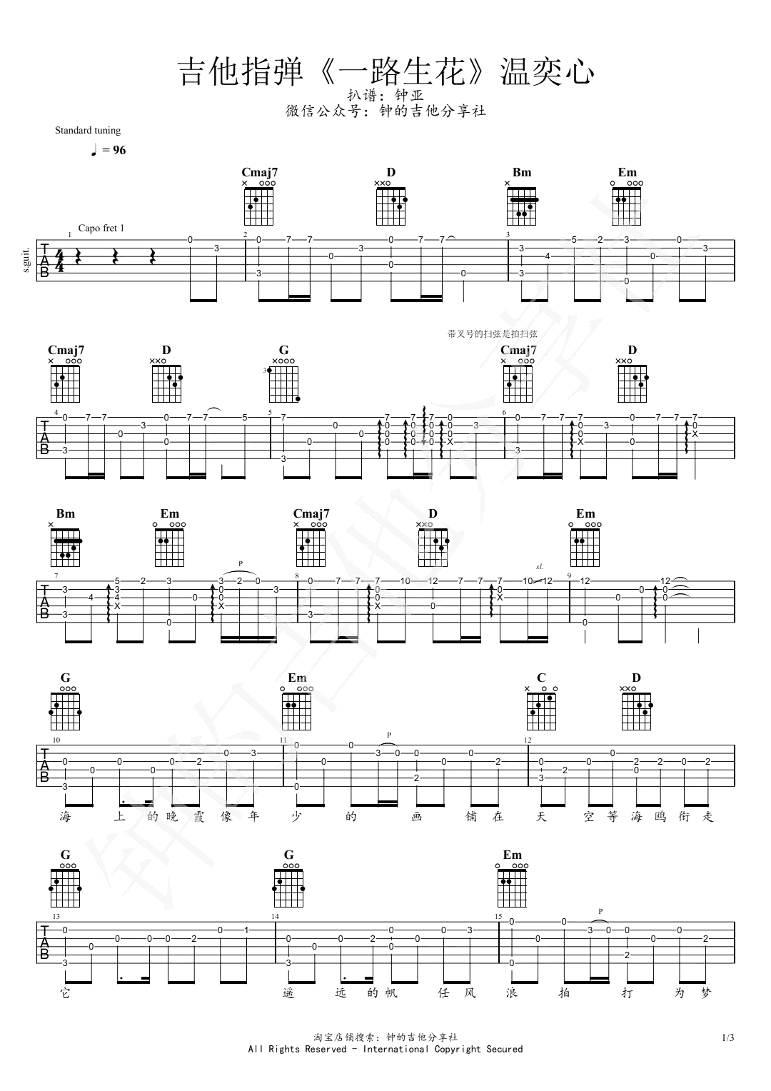 一路生花吉他谱 - 温奕心 - 吉他独奏谱 - 原版