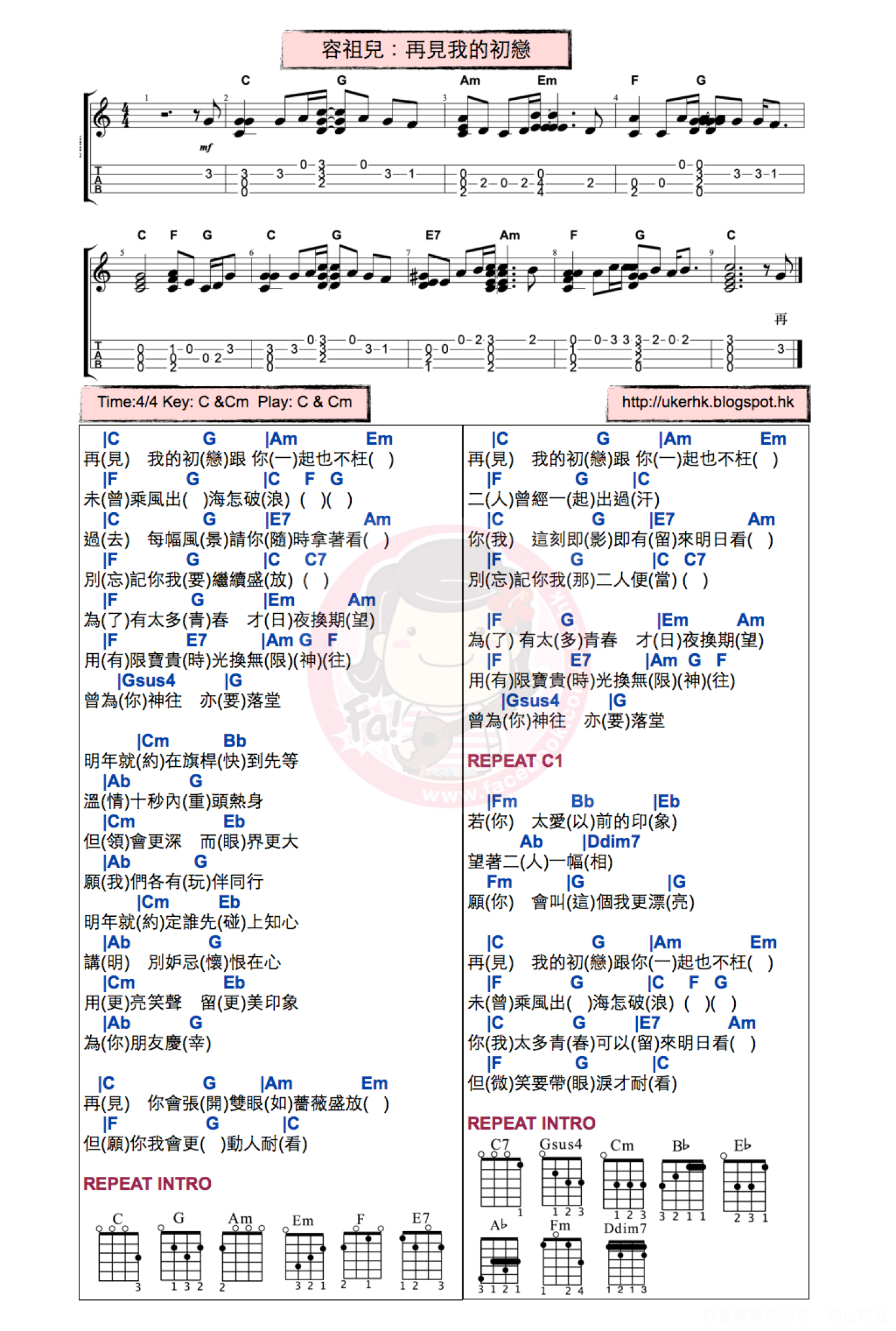 再见我的初恋尤克里里谱