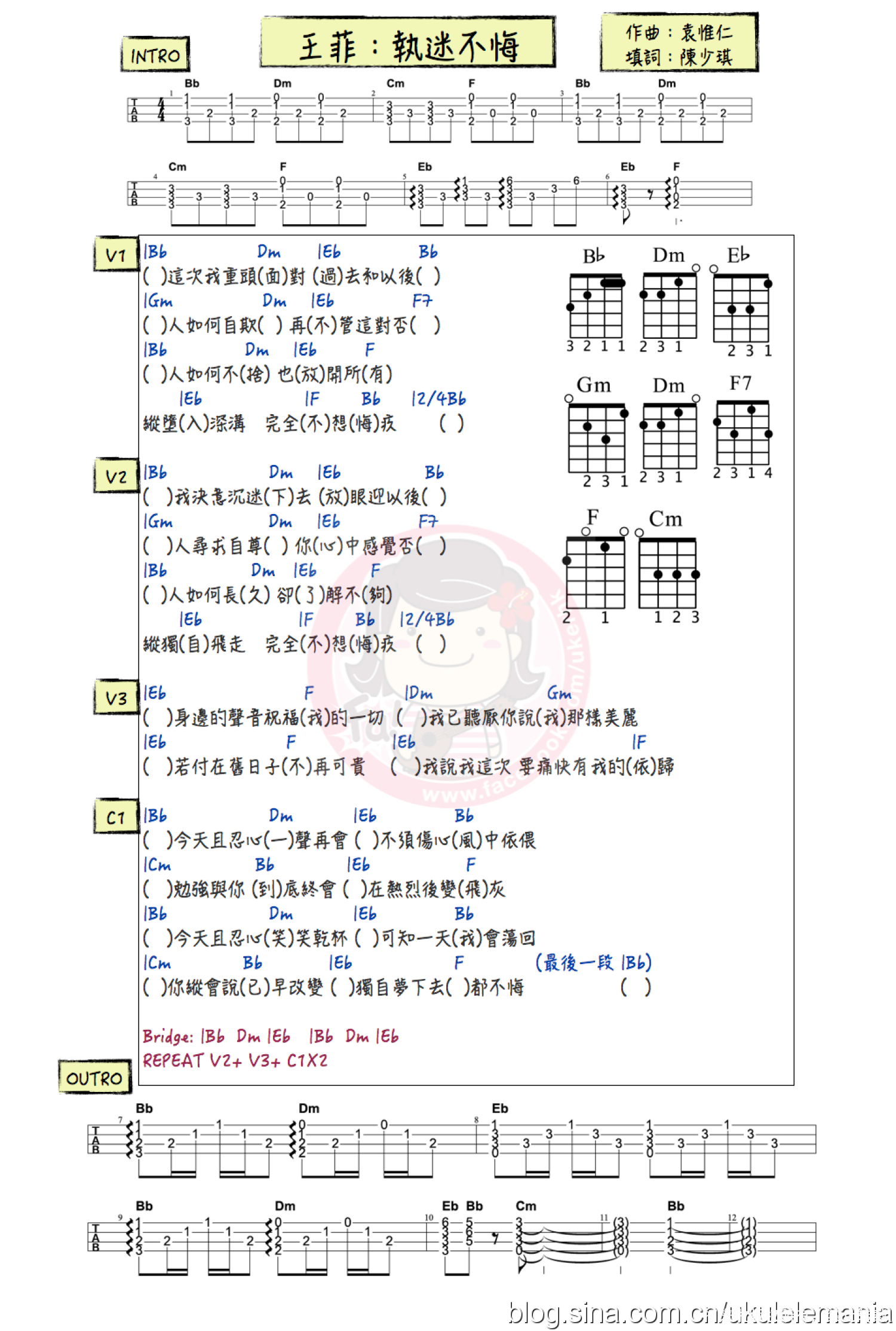 曲谱介绍: 王菲《执迷不悔》尤克里里谱,共有1张高清图谱,免翻页排版设计。