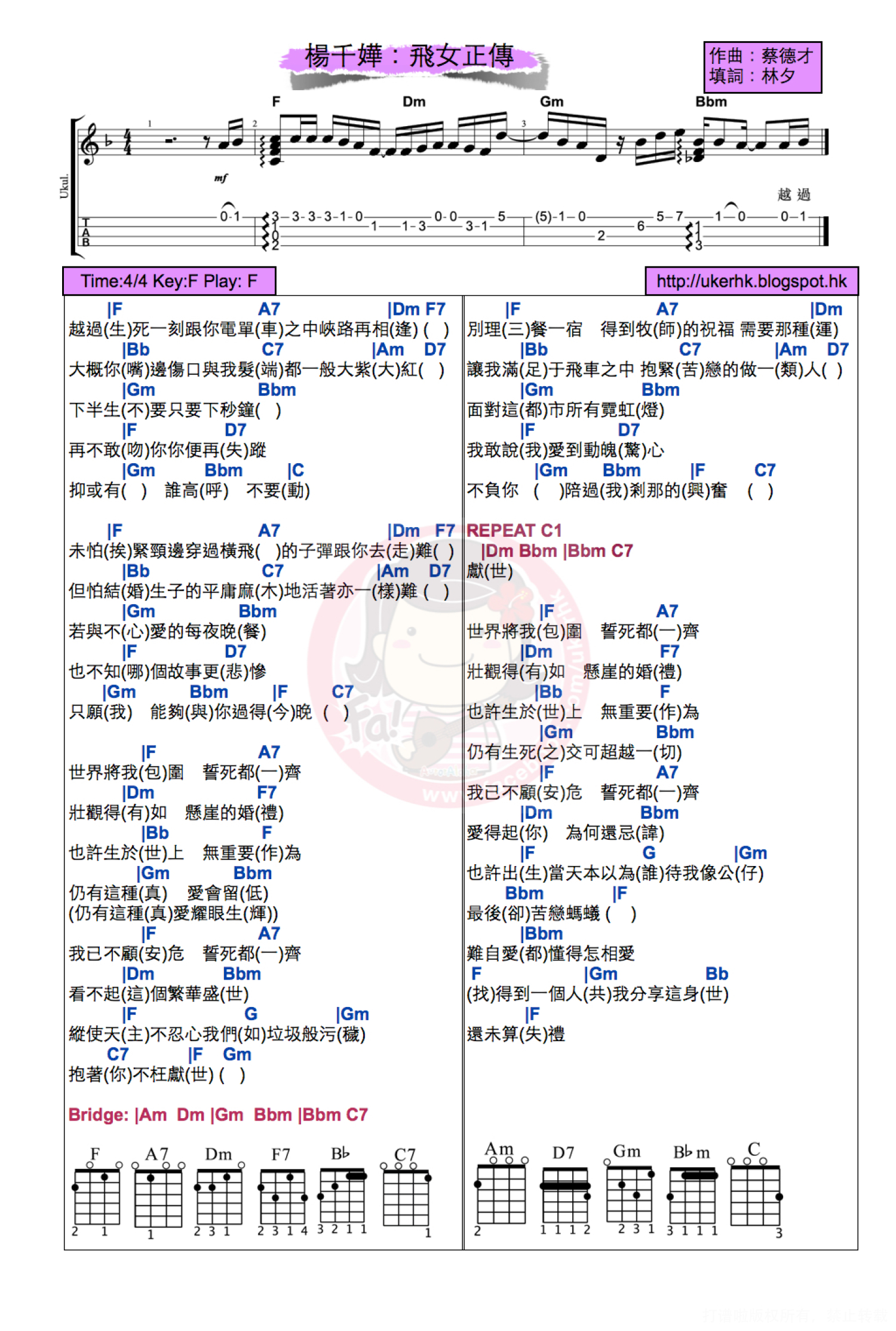 当前位置:琴谱网>尤克里里>飞女正传