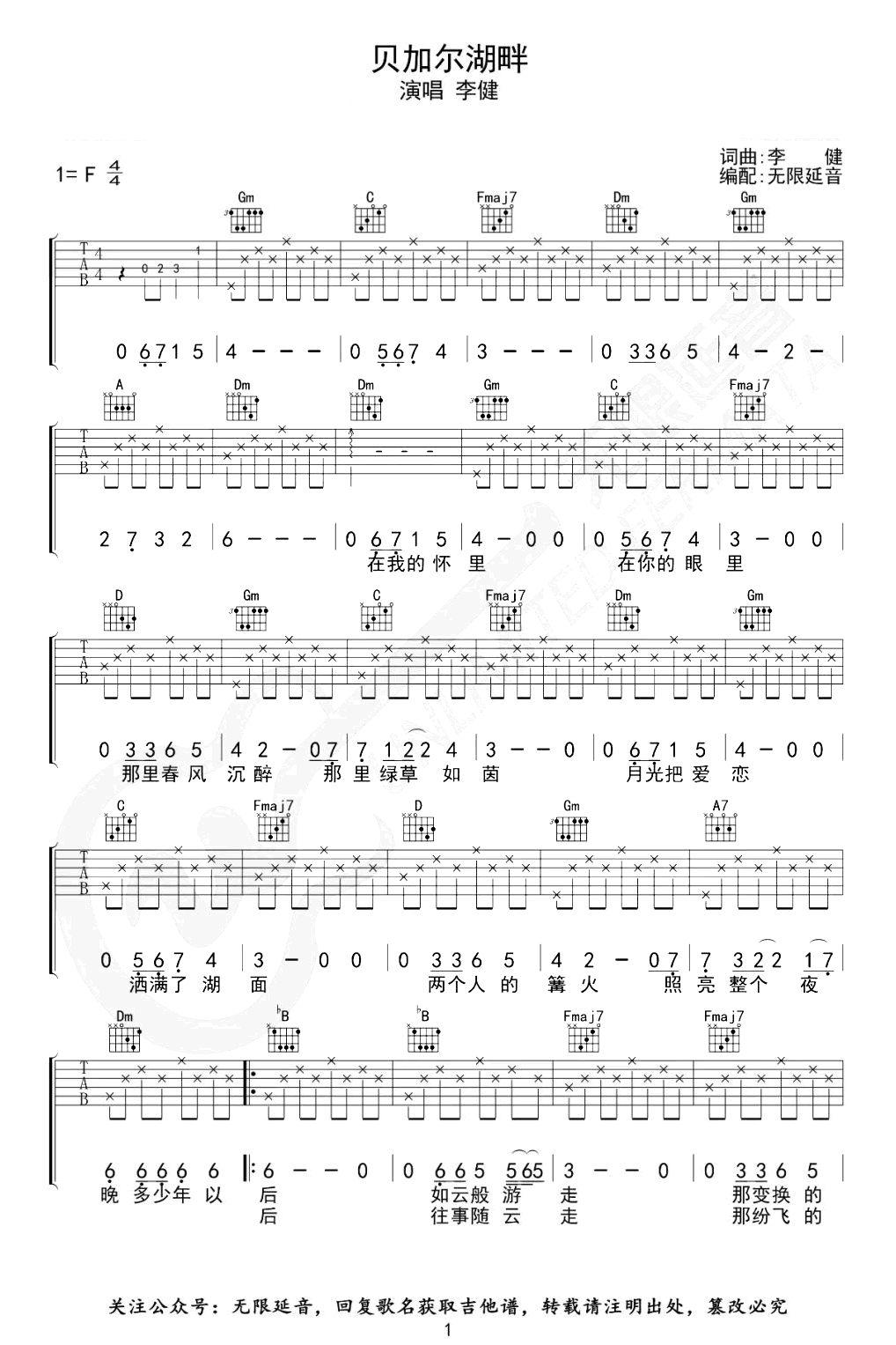 贝加尔湖畔吉他谱 - 李健 - F调吉他弹唱谱