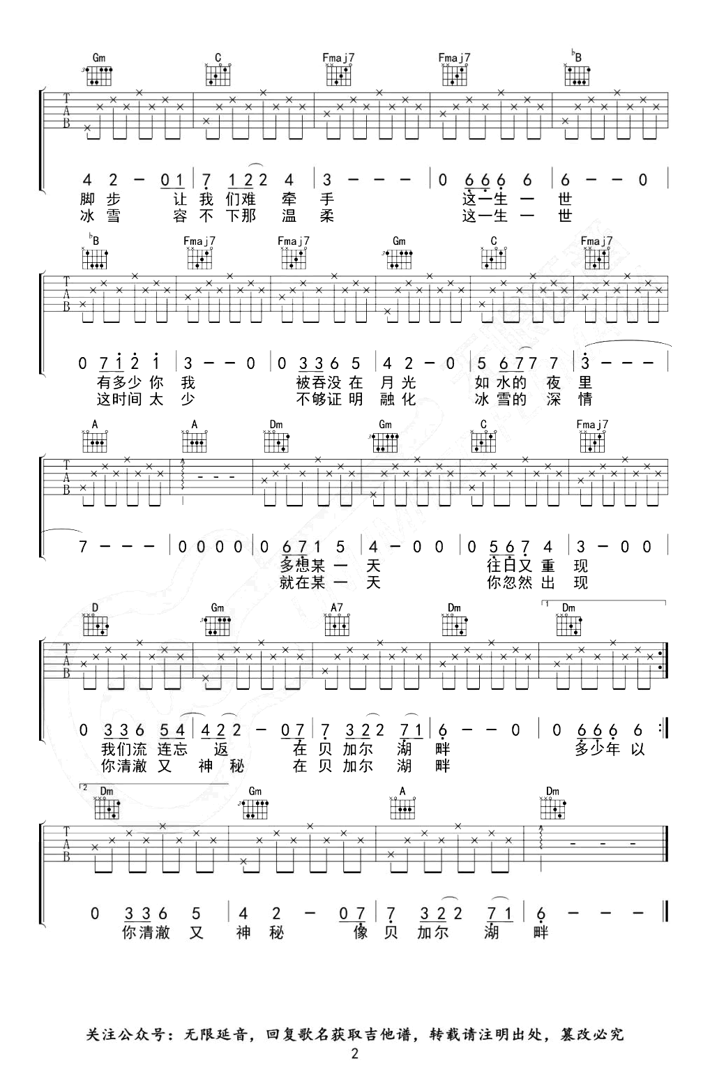 曲谱介绍: 李健《贝加尔湖畔》吉他弹唱谱,采用F调指法编配,共有2张高清图谱,免翻页排版设计。