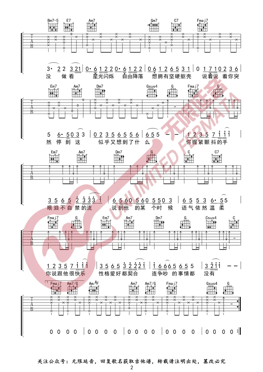 曲谱介绍: 歌曲原调为#C调,这里采用了C调指法进行编配,演唱时夹变调夹1品可回到原调,整体难度不大相对来说比较简单。