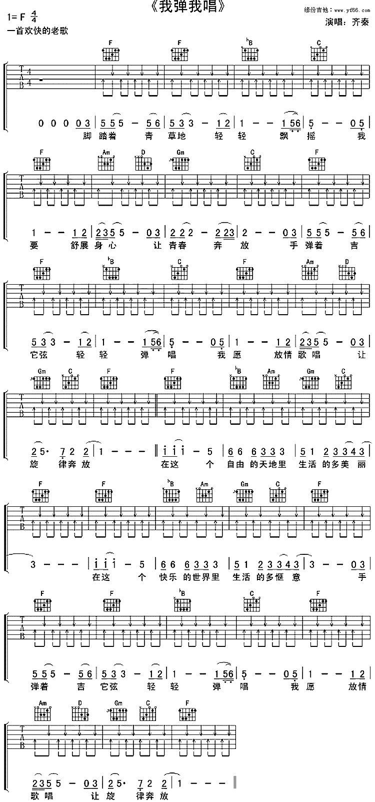 我弹我唱吉他谱 - 齐秦 - F调吉他弹唱谱