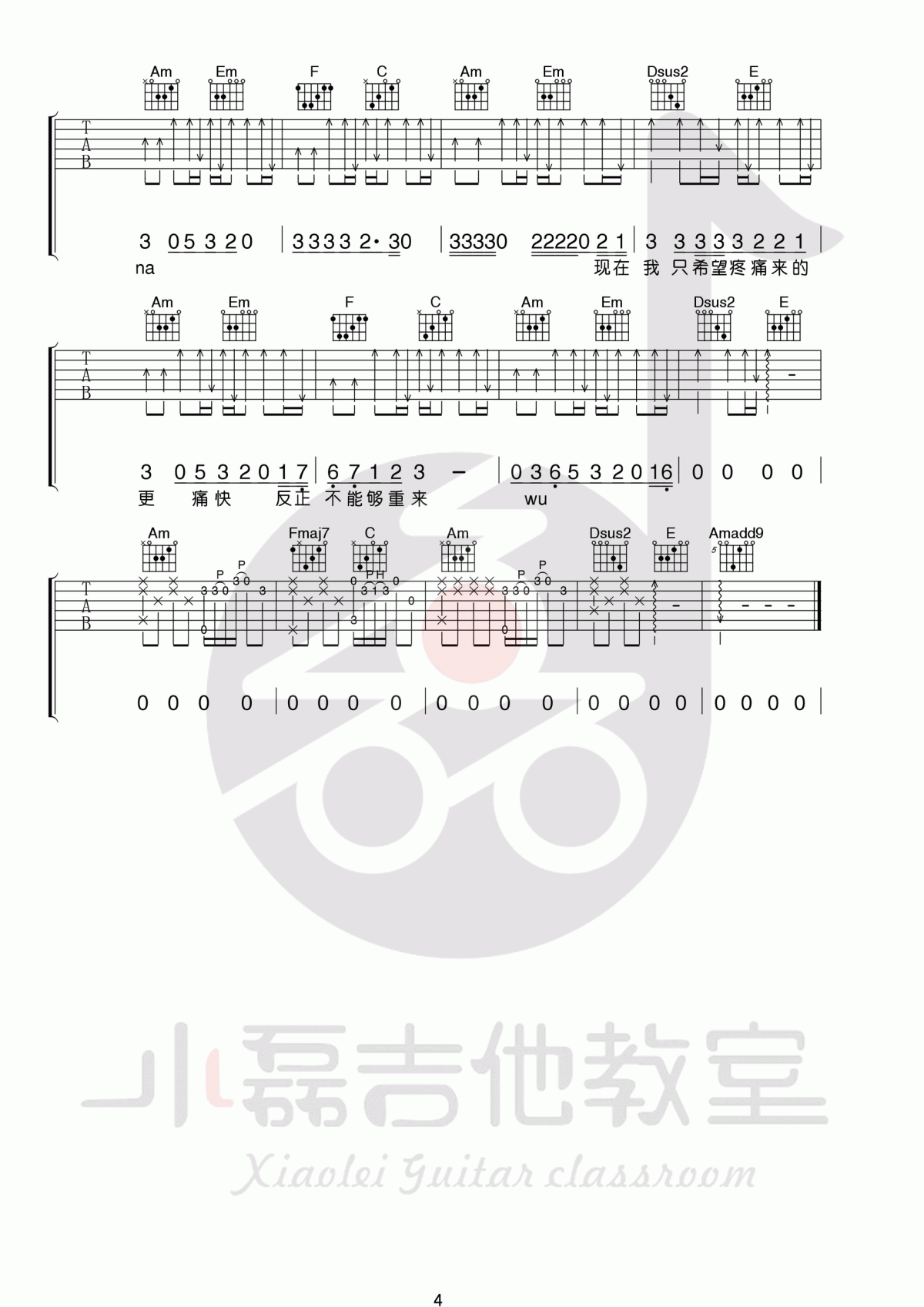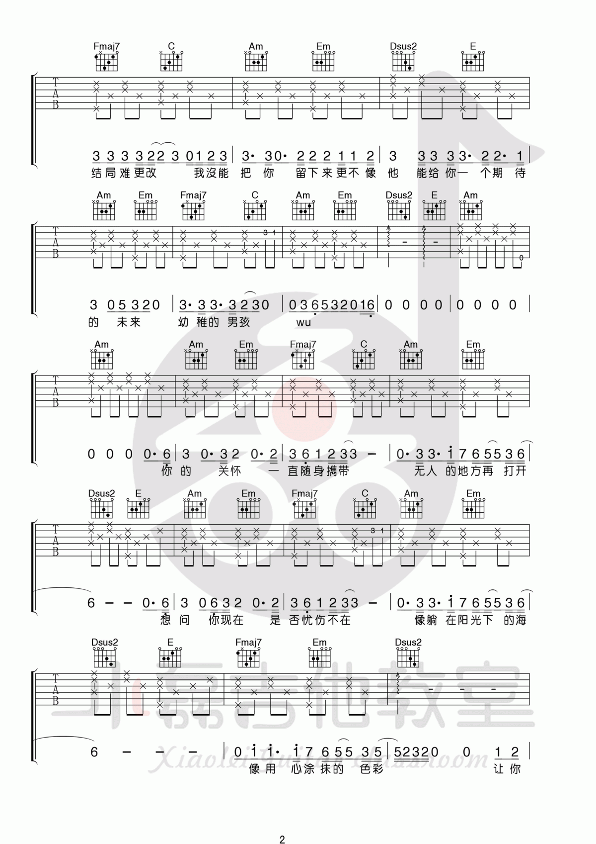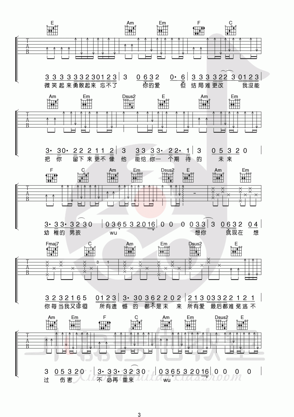 曲谱介绍: 梁博《男孩》吉他弹唱谱,采用C调指法编配,共有3张高清图谱。