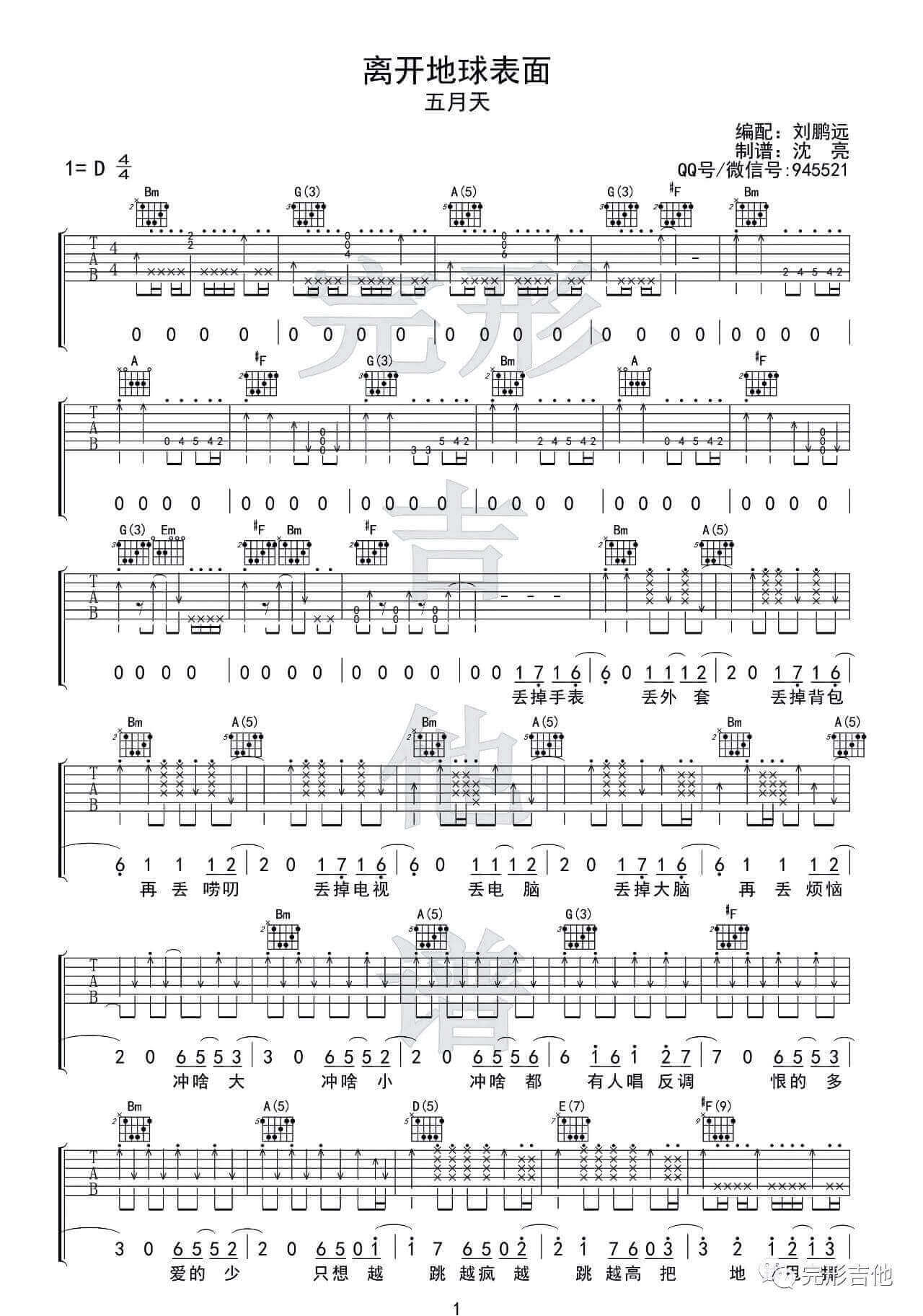 离开地球表面吉他谱 - 五月天 - D调吉他弹唱谱
