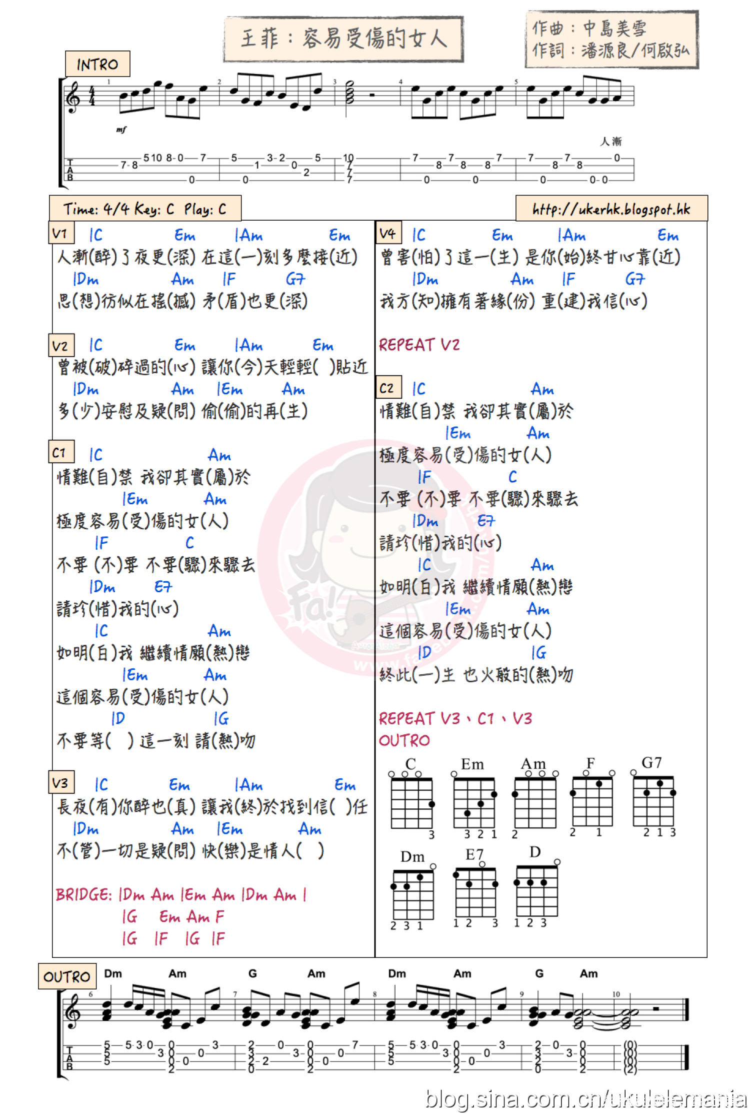 容易受伤的女人尤克里里谱 - 王菲