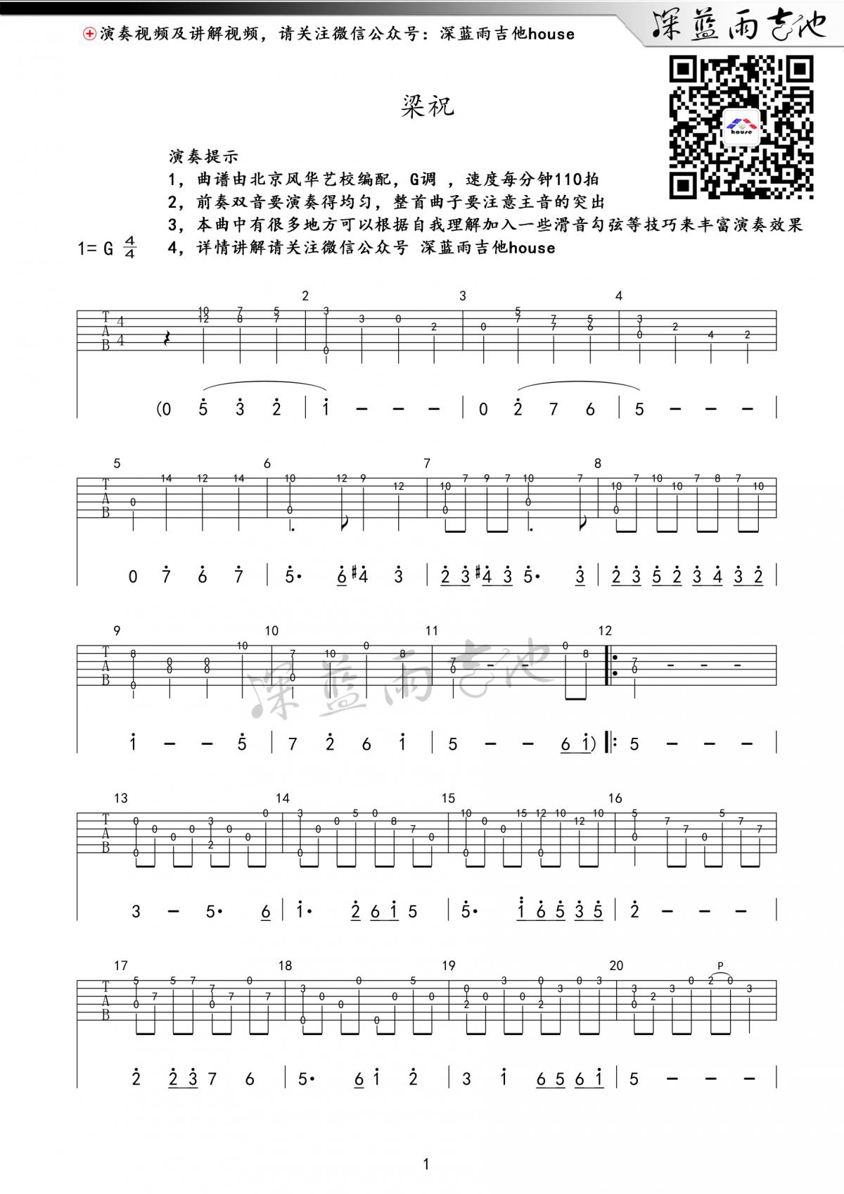 曲谱介绍: 梁祝《梁祝_版》吉他独奏谱,共有3张高清图谱。