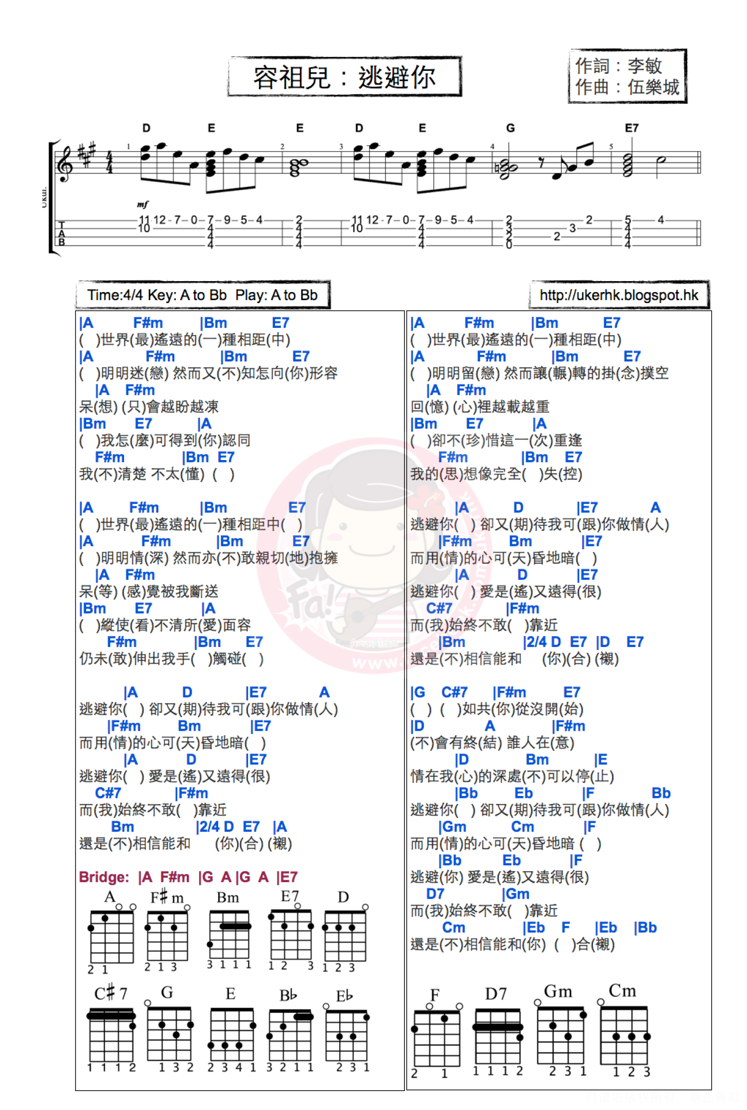 曲谱介绍: 《逃避你》,共有1张高清图谱,免翻页排版设计。