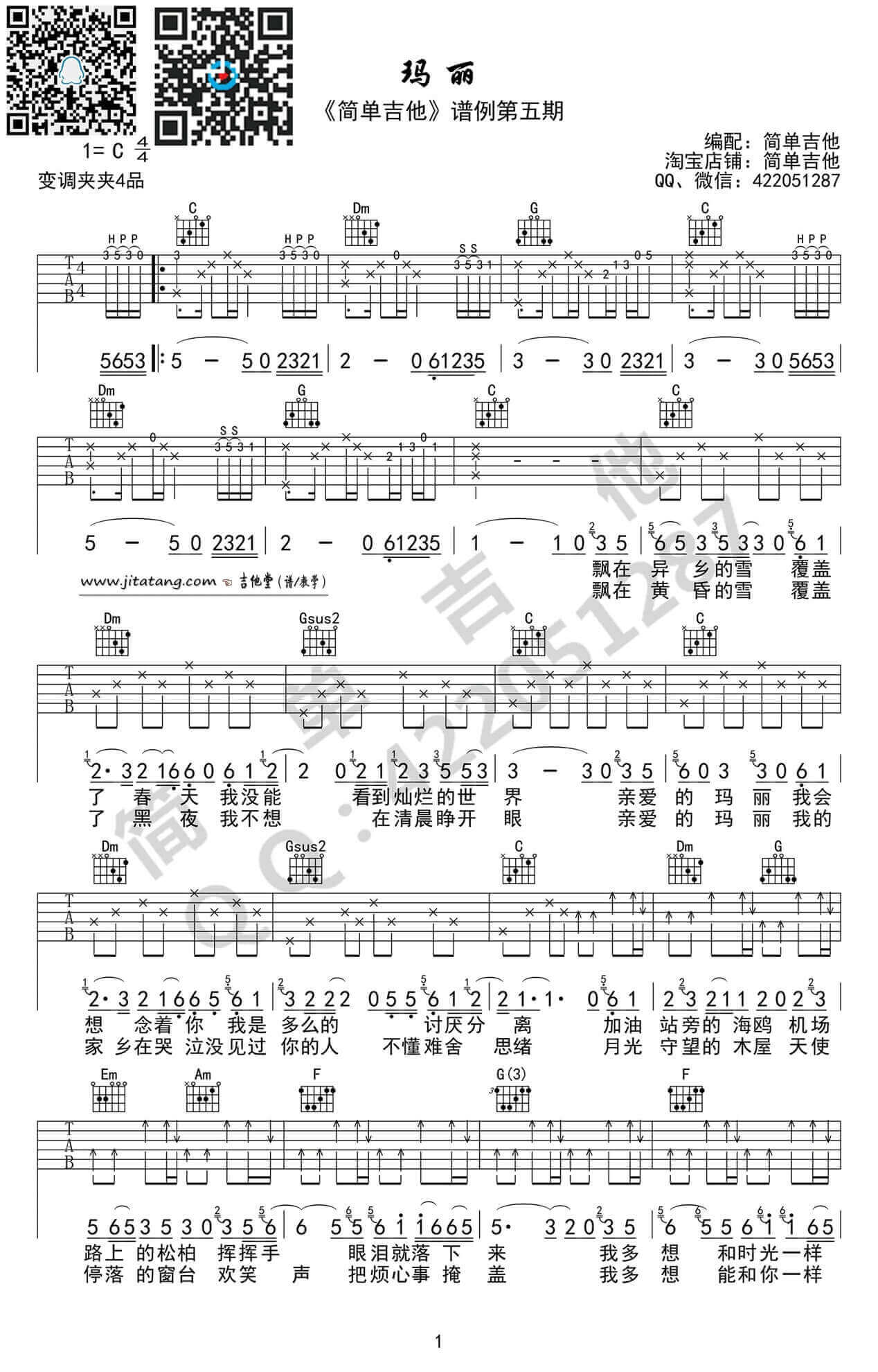 琴谱网为您精心推荐 玛丽 高清图谱