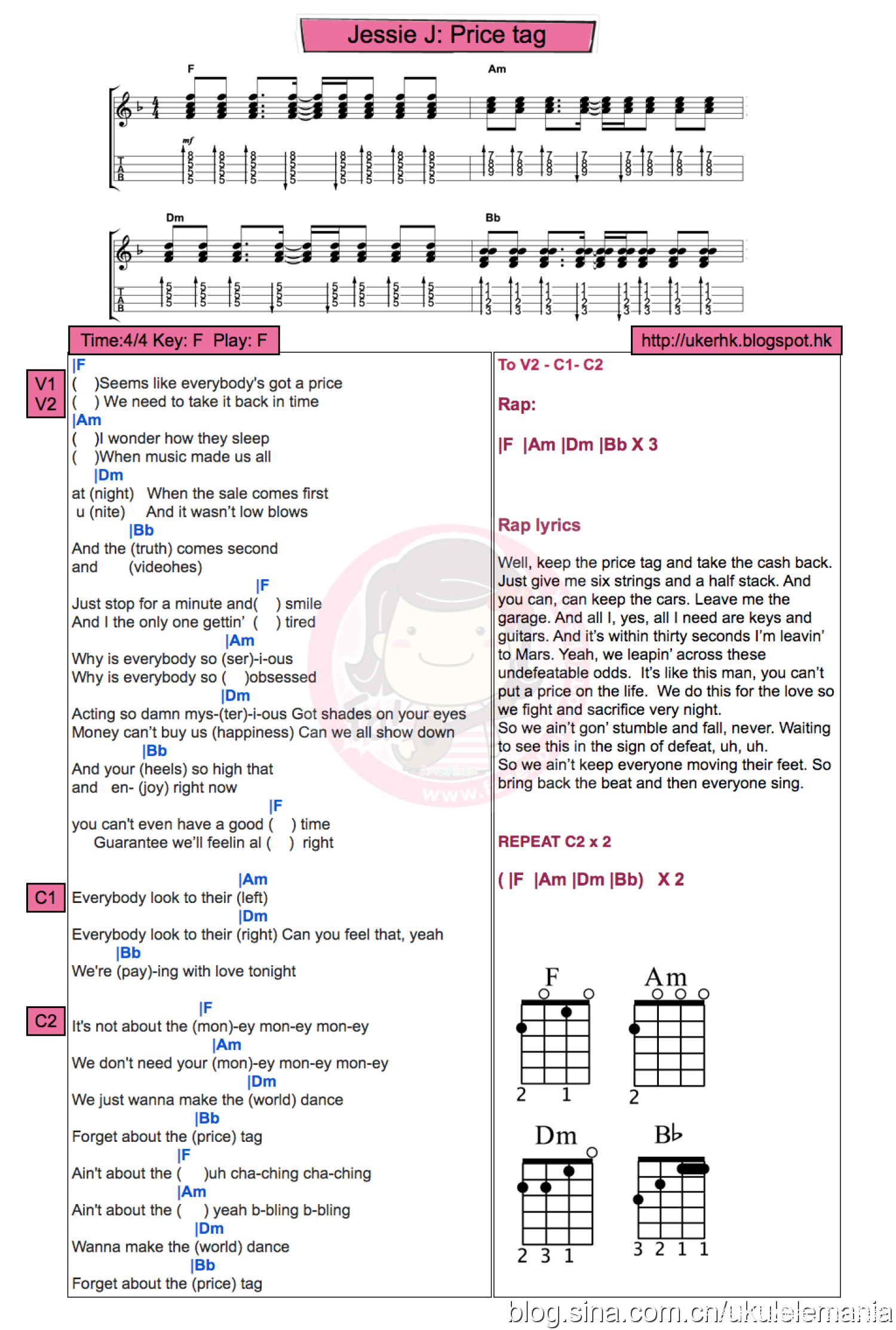 曲谱介绍: Price Tag ukulele谱   Price Tag 网友marry弹唱演示: