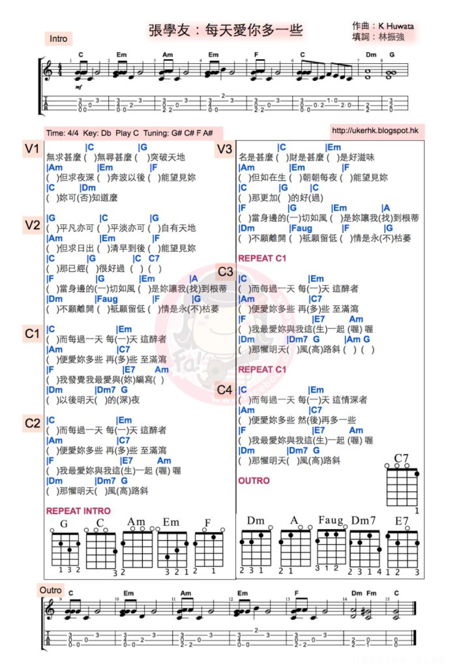 当前位置:琴谱网>尤克里里>每天爱你多一些
