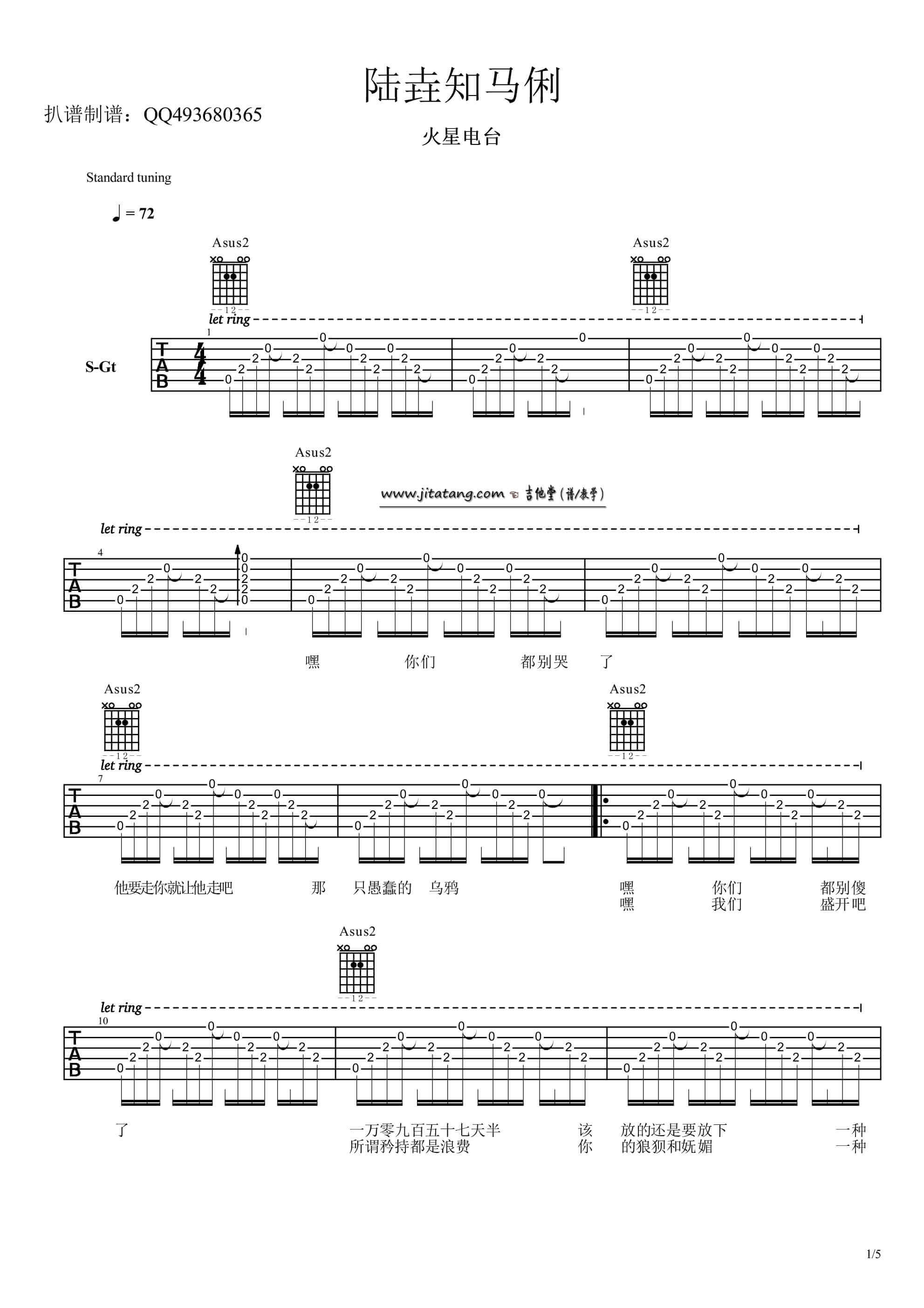 陆垚知马俐吉他谱 - 火星电台 - A调吉他弹唱谱