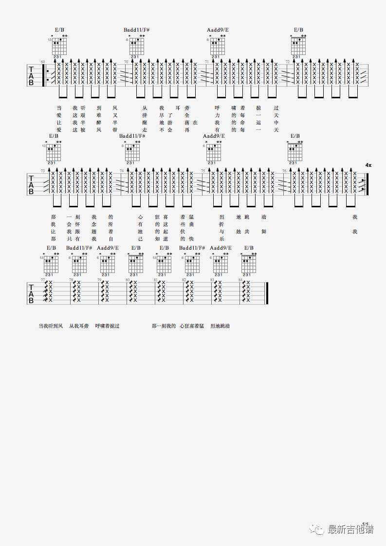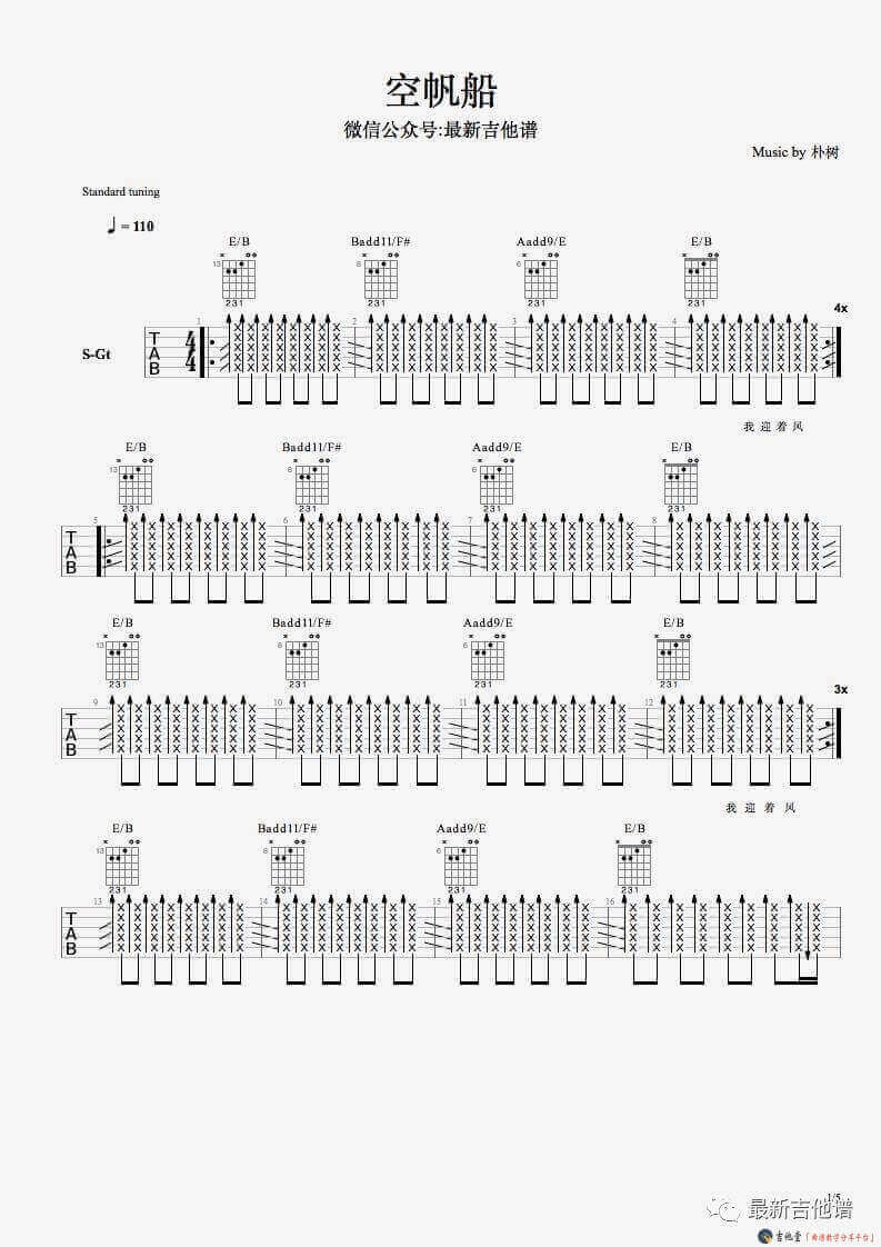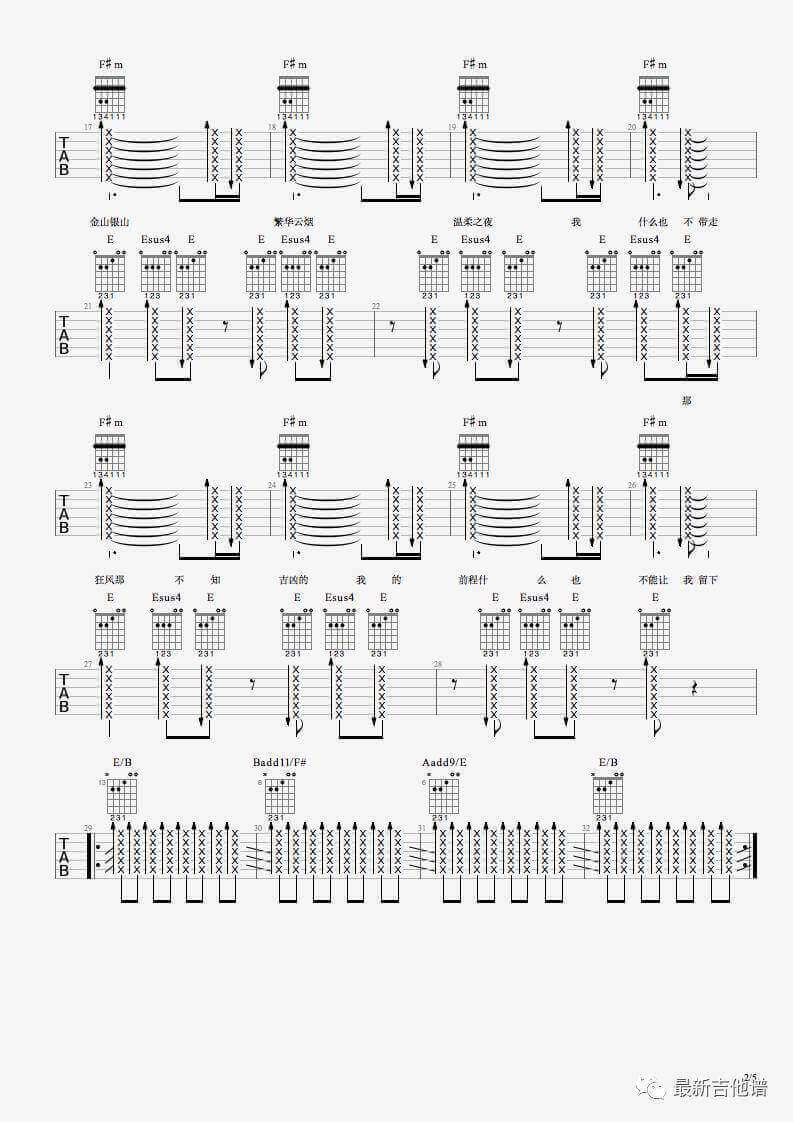 曲谱介绍: 杨坤/金志文《空城》吉他弹唱谱,采用C调指法编配,共有5张高清图谱。