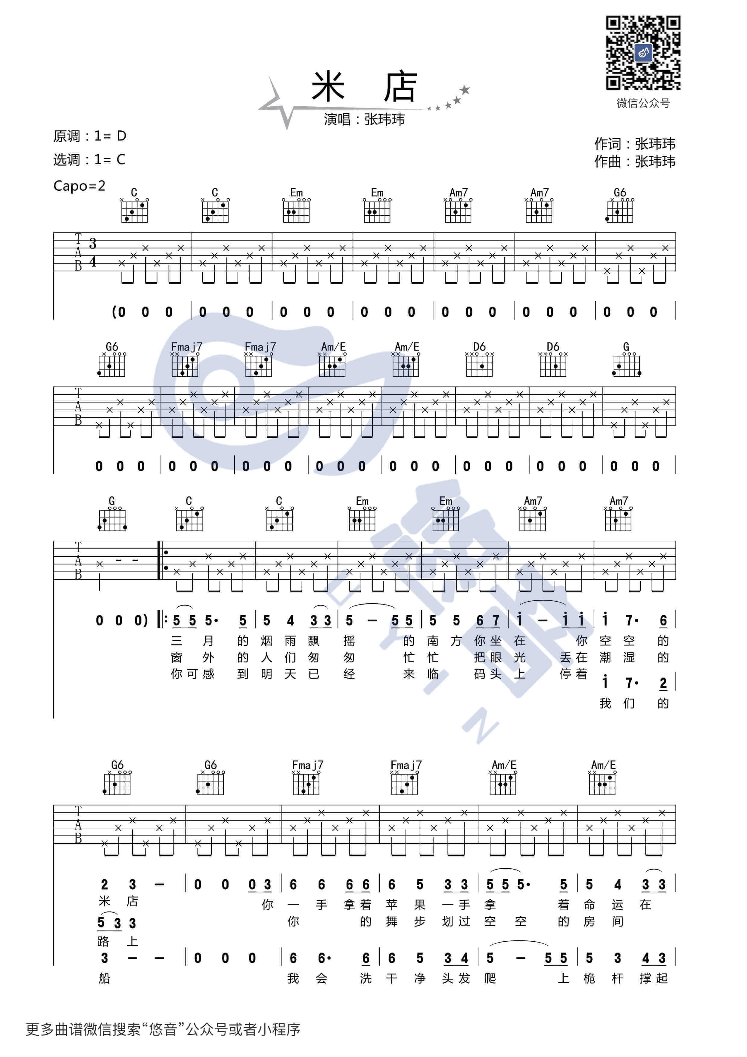 米店吉他谱 - 张玮玮 - C调吉他弹唱谱