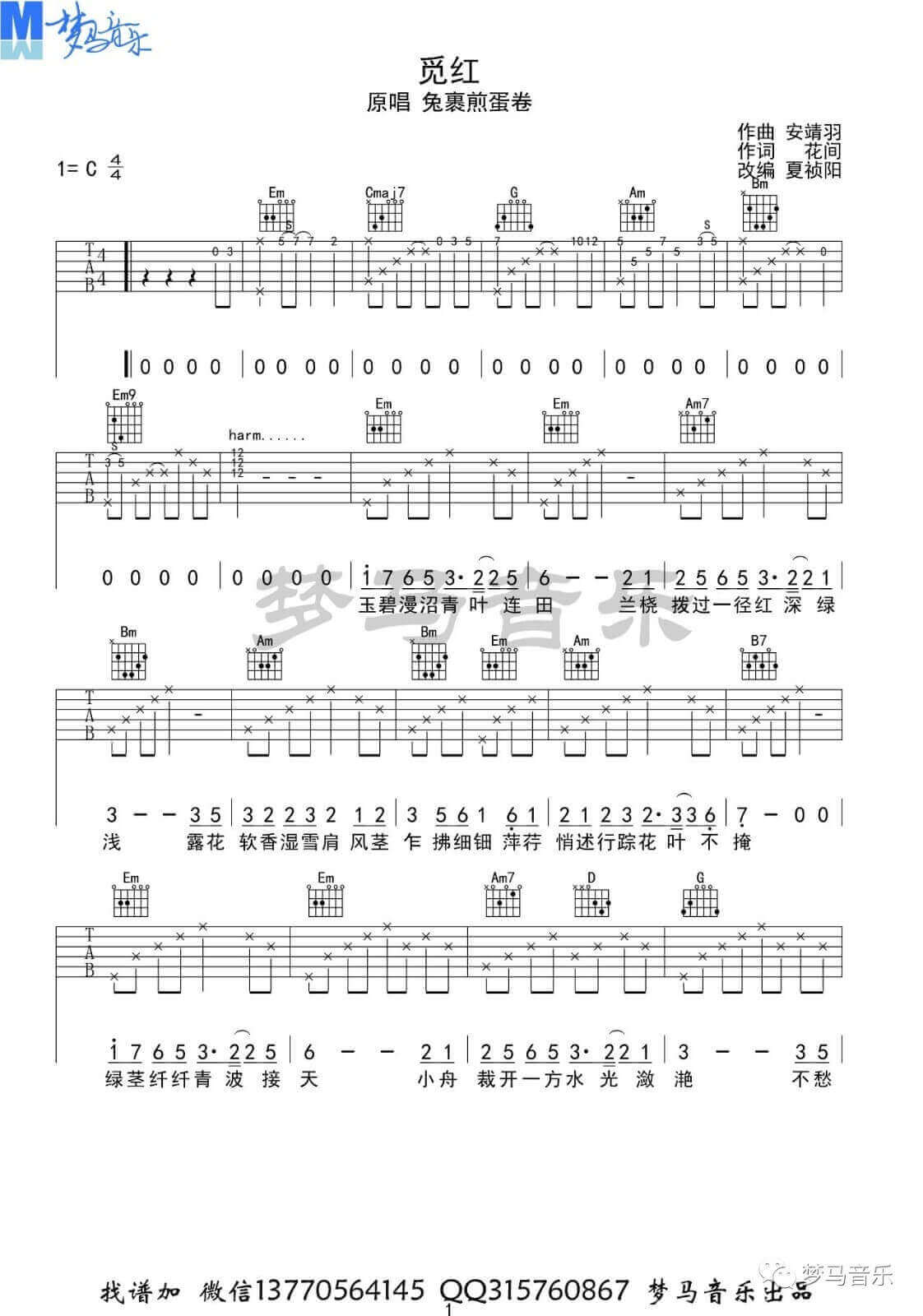 觅红吉他谱 - 兔裹煎蛋卷 - C调吉他弹唱谱