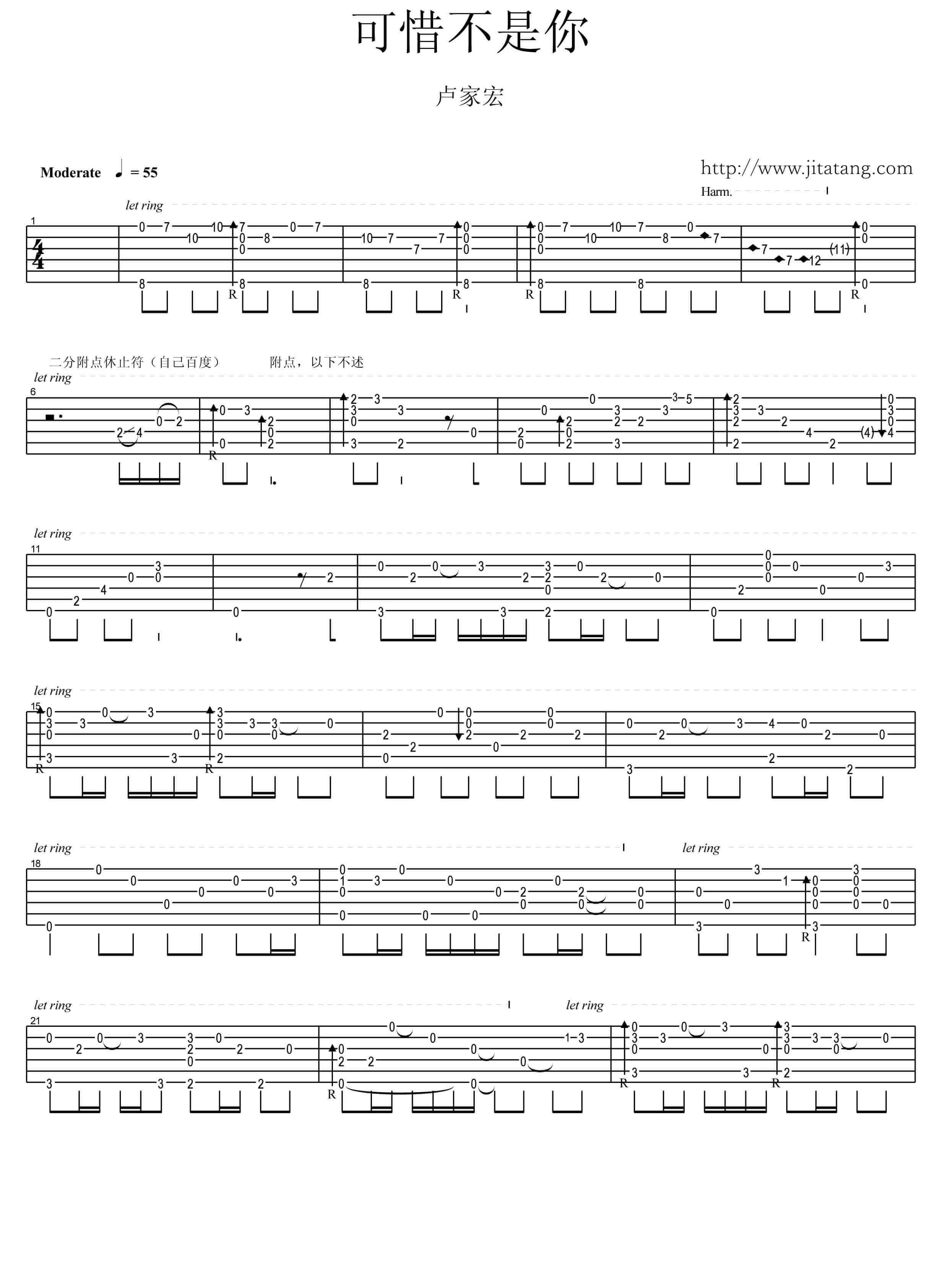 可惜不是你吉他谱 - 梁静茹 - 吉他独奏谱
