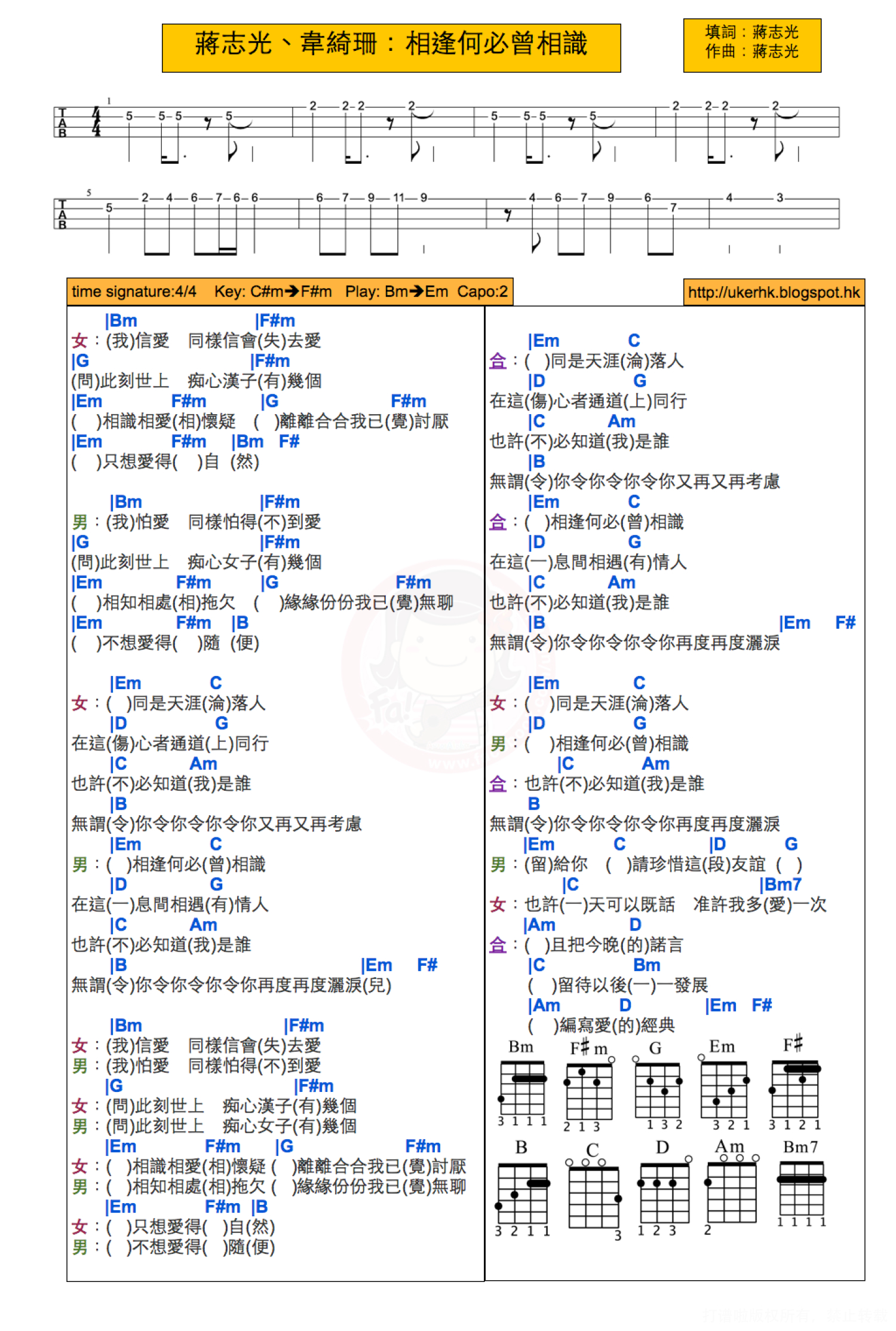 相逢何必曾相识尤克里里谱 - 蒋志光/韦绮姗