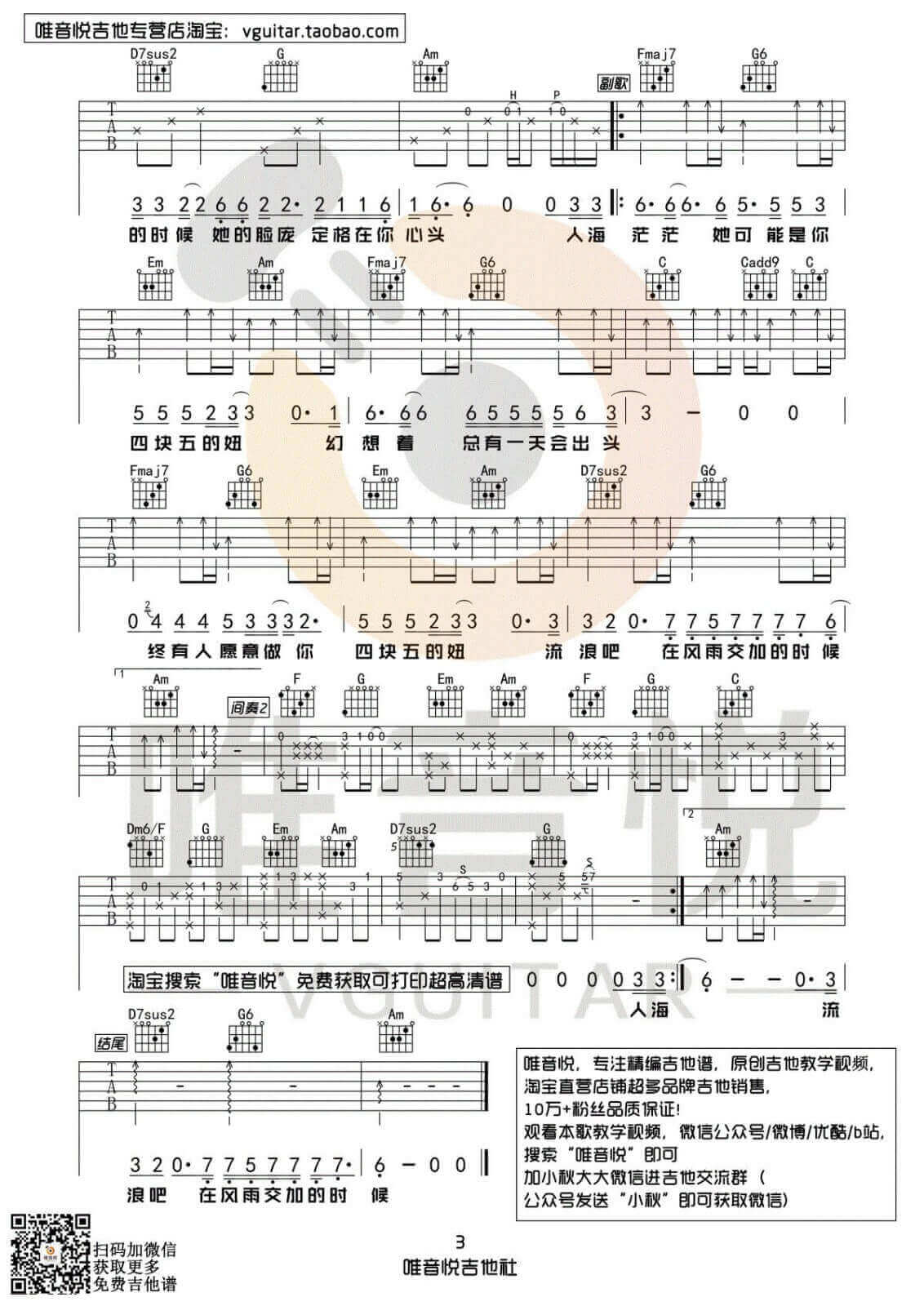 当前位置:琴谱网>吉他弹唱>四块五