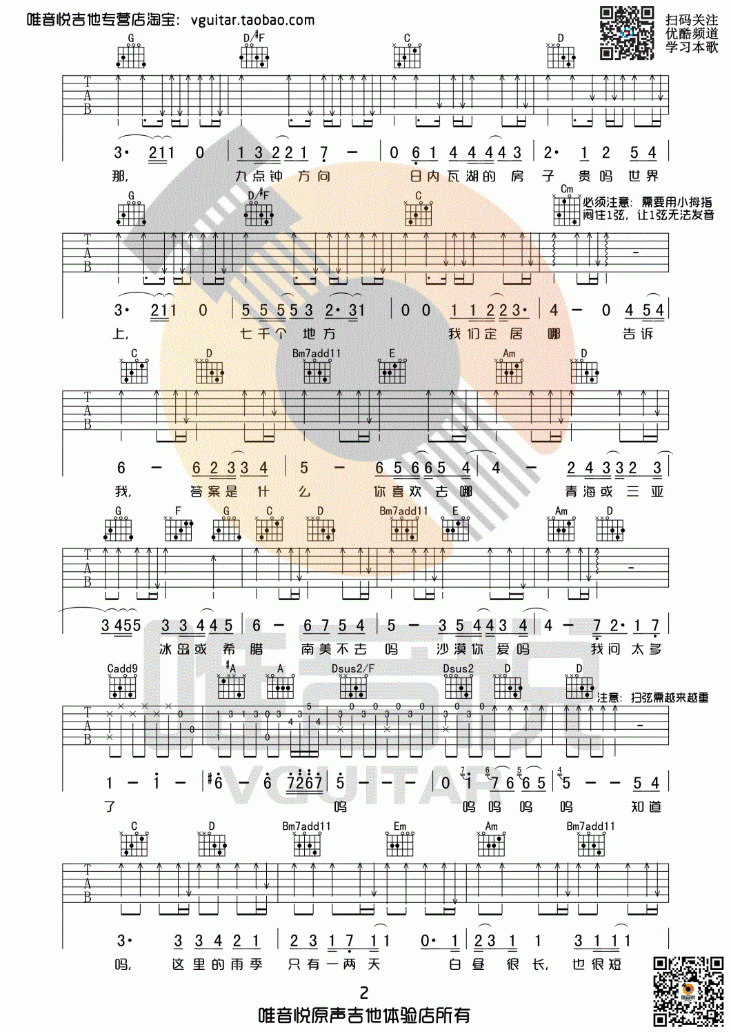 曲谱介绍: 陈绮贞《我喜欢上你时的内心活动》吉他弹唱谱,采用G调指法编配,共有2张高清图谱,免翻页排版设计。