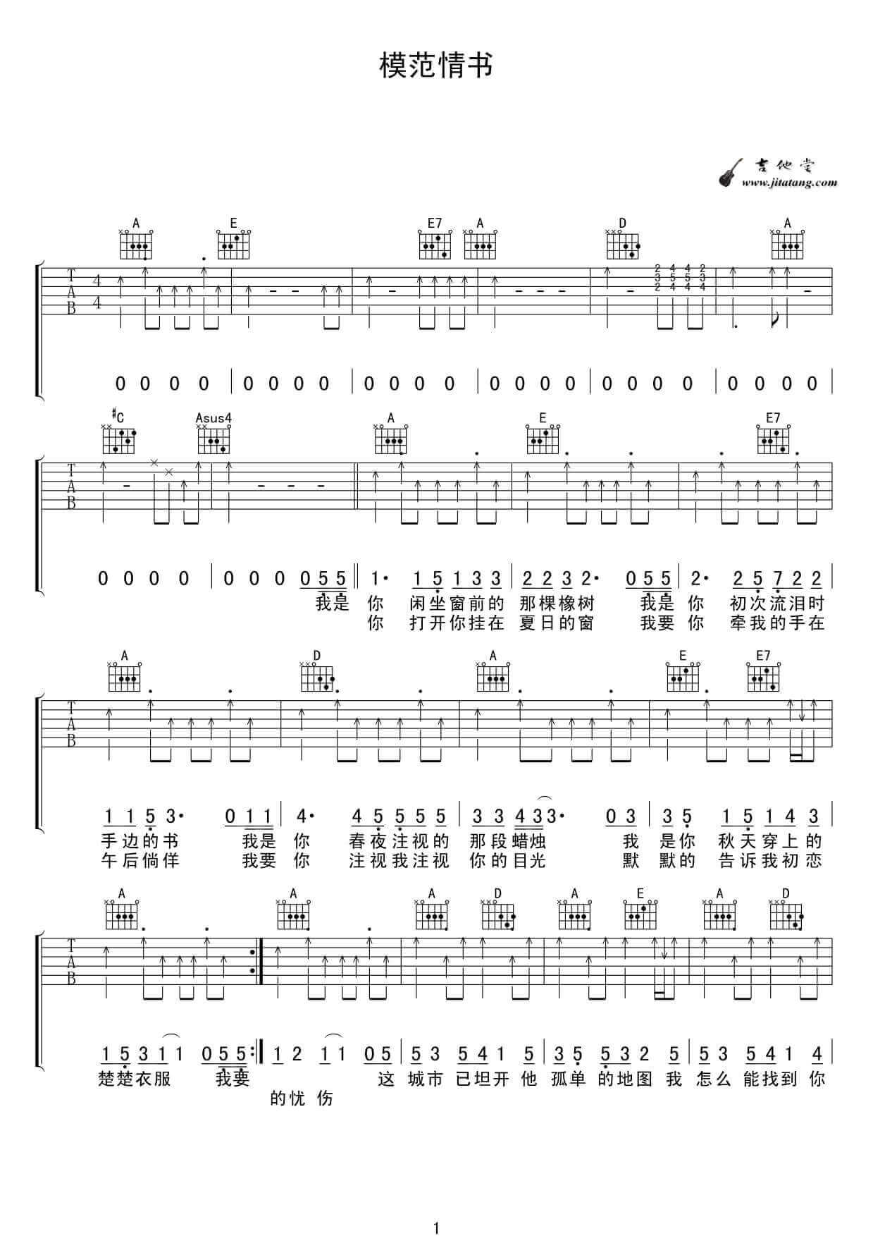 当前位置:琴谱网>吉他弹唱>模范情书