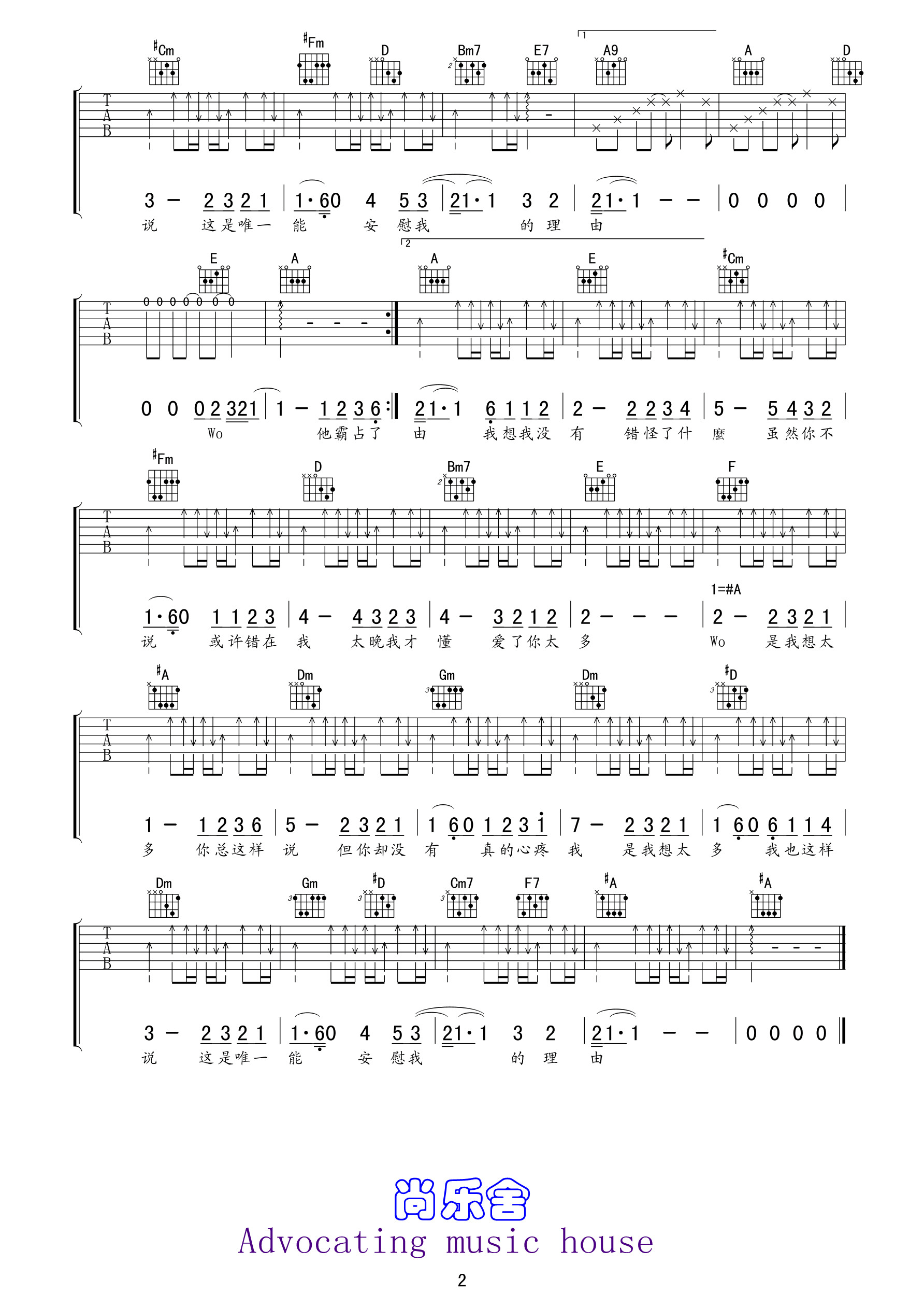当前位置:琴谱网>吉他弹唱>想太多