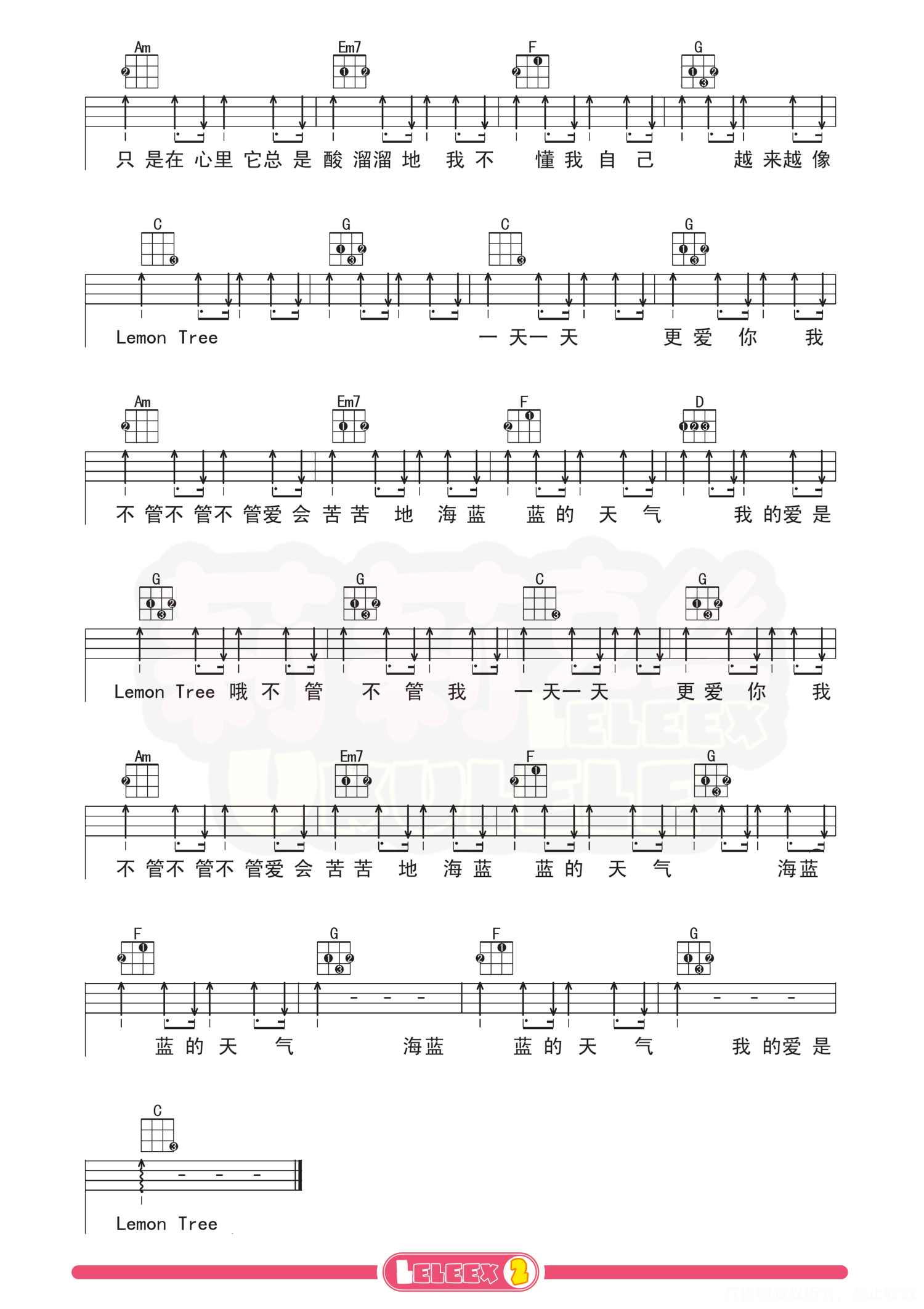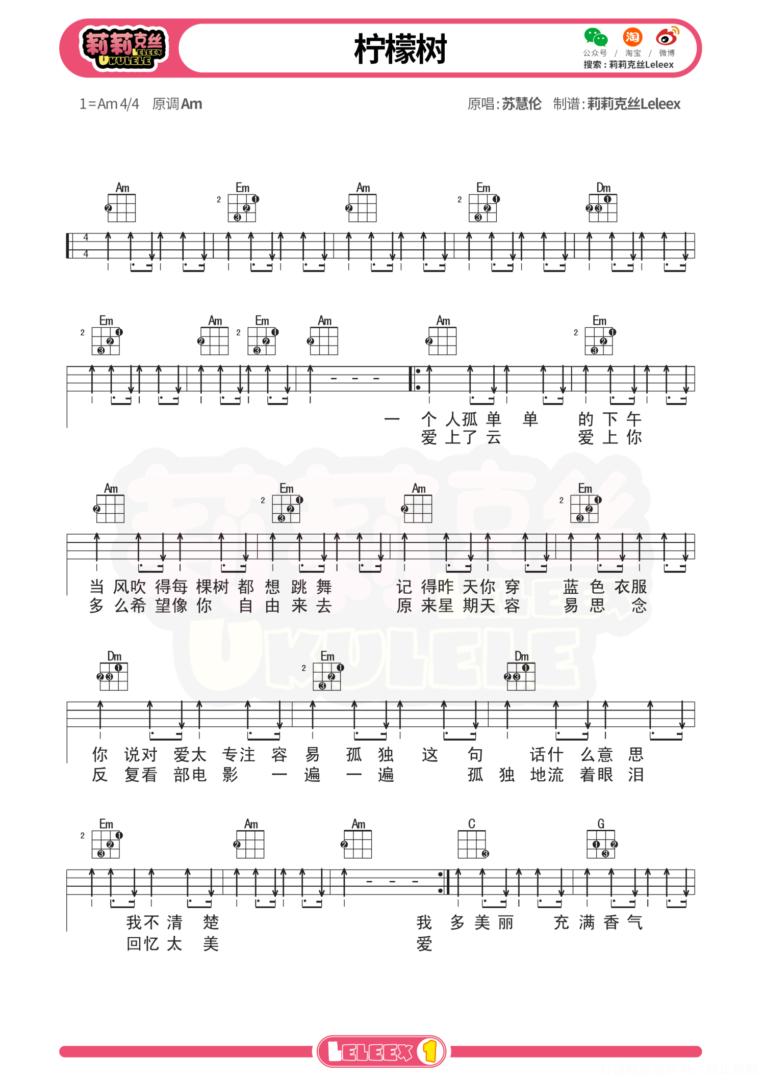 曲谱介绍: 《柠檬树》尤克里里曲谱+教学(苏慧伦) 弹唱教学 曲谱 更多尤克里里曲谱/教学  关注@莉莉克丝Leleex