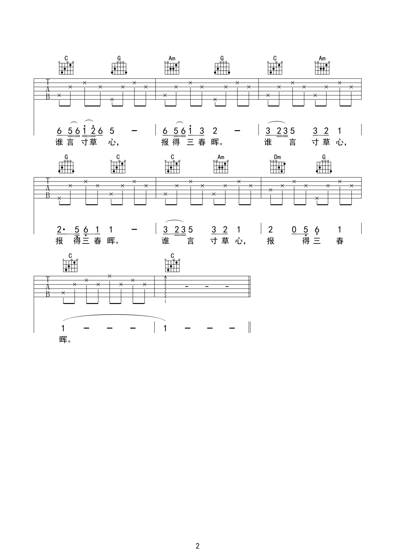曲谱介绍: 齐元义《游子吟》吉他弹唱谱,采用C调指法编配,齐元义编配出品,共有2张高清图谱,免翻页排版设计。